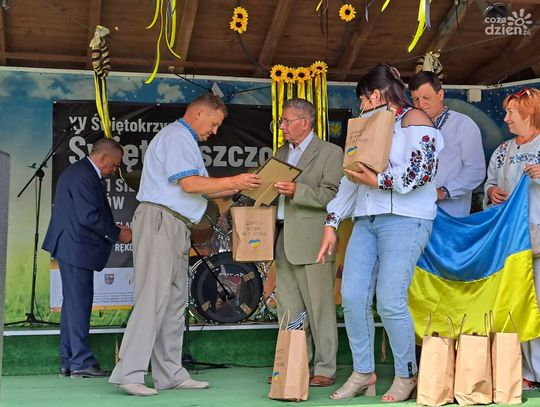 Wyjątkowe nie tylko z powodu jubileuszu są tegoroczne spotkania pszczelarzy na bałtowskiej Okręglicy. Gośćmi specjalnymi są bowiem Ukraińcy, którzy choć są obecni od lat na tych pszczelarskich dożynkach, to tym razem przyjechali przede wszystkim, by podziękować mieszkańcom i władzom naszego regionu za pomoc jakiej od naszych rodaków doświadczył ich naród w wojnie z rosyjskim okupantem. Stąd specjalne podziękowani a nawet medale dla tych, którzy szczególnie zasłużyli się w niesieniu tej braterskiej pomocy. Medal miasta Lwowa otrzymał więc Józef Misiura prezes Stowarzyszenia Pszczelarzy Ziemi Ostrowieckiej. Resortowe odznaczenia oraz medale od Marszałka Województwa Świętokrzyskiego otrzymali również szczególnie zasłużeni pszczelarze. Nagrody odebrali także laureaci konkursu "Pszczoły nasze życie", a więc uczniowie ale także ich rodzice.