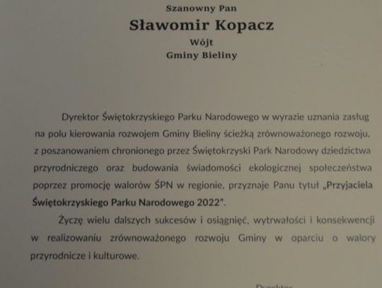 Tym samym dołączył do zacnego grona osób, które w wyjątkowy sposób swoją pracą i zaangażowaniem przyczyniają się do rozwoju obszaru Gór Świętokrzyskich w zakresie ochrony przyrody, a także rozwoju turystyki i infrastruktury z nią związanej.