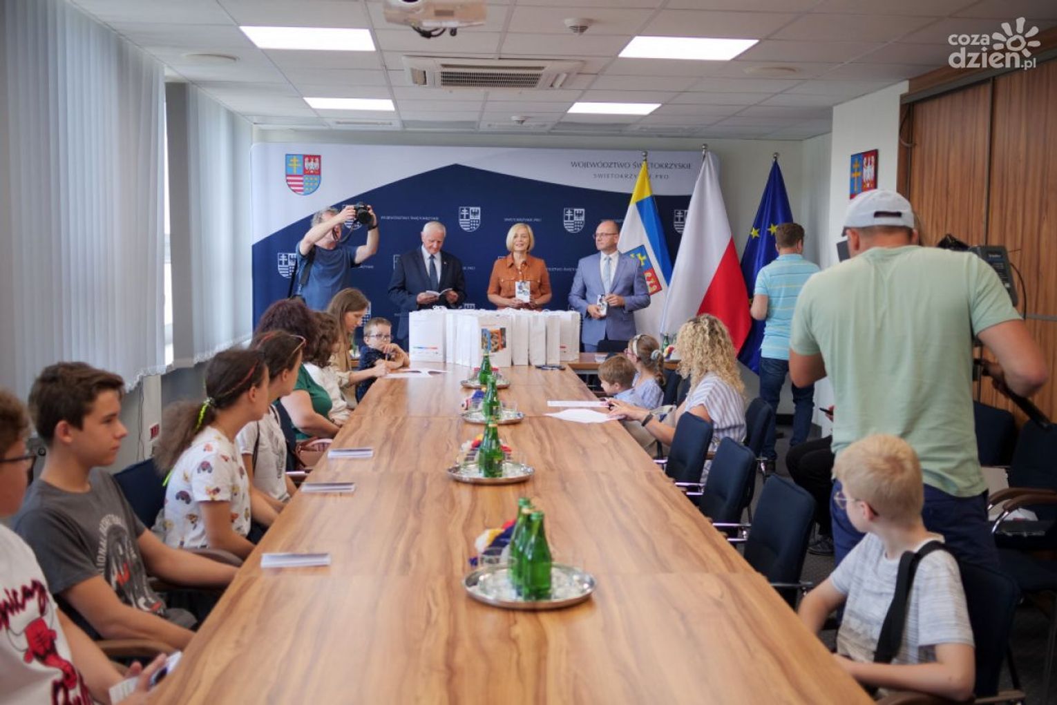 Młodzi podróżnicy z rąk Wicemarszałek Renaty Janik otrzymali upominki w ramach akcji ,,Zwiedzaj Świętokrzyskie".