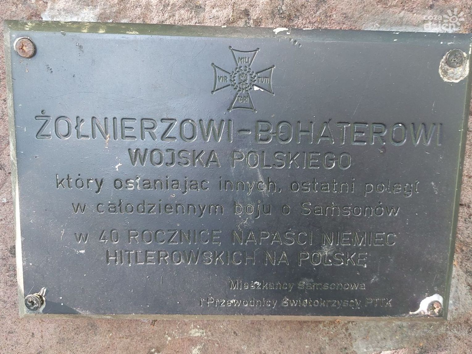 6 września 1939 roku pod Samsonowem kapral Karol Honigsman poległ w walce z niemieckim najeźdźcą osłaniając wycofujących się kolegów. Jego grób znajduje się około 40 metrów od szosy przy ruinach hutniczych. Tuż obok tego, niestety nie brakuje różnych niepożądanych przedmiotów.