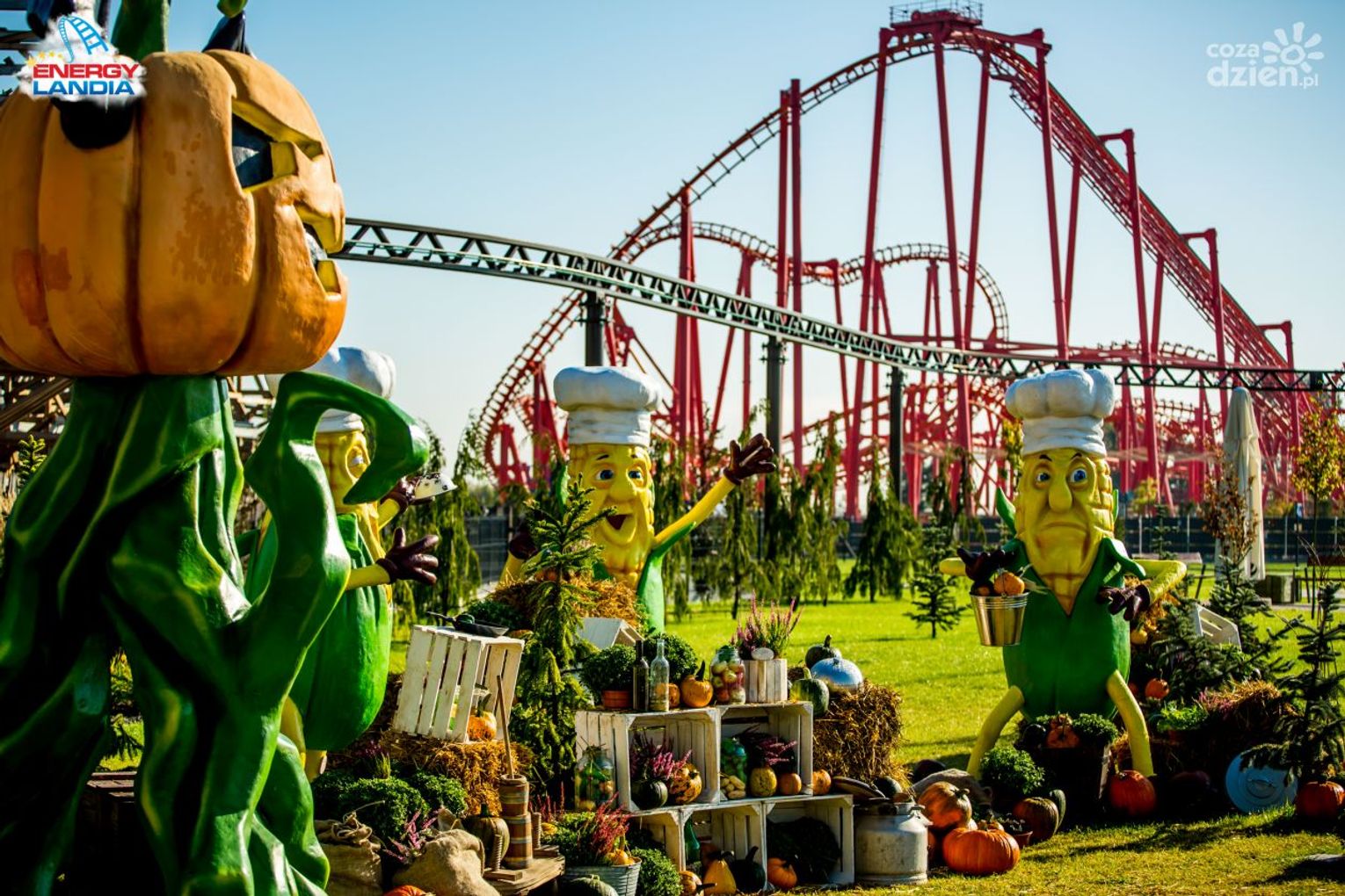 Do tego, że trzecia pora roku w Energylandii jest niesamowita, nikogo nie trzeba przekonywać. Polska Złota Jesień w Parku w Zatorze to jednak coś o wiele więcej niż spadające liście i złote, zachodzące słońce. W tym roku to setki godzin przygotowań, niesamowite stylizacje animatorów, lśniące stroje artystów i zupełnie nowe, jesienne show, przynoszące wszystkim Gościom niezapomniane wrażenia! Polska, Złota Jesień to również nieodłączne, jesienne dynie, hodowane specjalnie na tę okazję dla Parku. W tym roku ilość ich sięga aż 75 000 sztuk! Łączna waga owoców dyni, które spotkać można w Energylandii sięga 150 ton, co opowiada niemalże 22 dorosłym słoniom, a to nadal nie wszystko! Na Gości czeka dodatkowe 100 000 skrupulatnie przygotowywanych dekoracji, które ciągną się od samego wejścia, aż po ostatnie ścieżki i Strefy Parku w Zatorze. Wszystko to w otoczeniu 123 atrakcji Parku i najwyższych w Europie roller coasterów, które niezmiennie zabiorą wszystkich ochotników na pełne emocji przejażdżki!