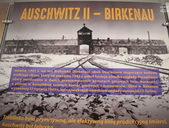 Osobne plansze poświęcone zostały sześciu obozom zagłady utworzonych przez Niemców na okupowanych ziemiach polskich, a także ofiarom oraz osobom odpowiedzialnym za popełnione zbrodnie. Ponadto, autor wystawy, dr Michał Zawisza z Referatu Edukacji Narodowej w kieleckiej Delegaturze IPN, prezentując tematykę niemieckich obozów zagłady, wykorzystał liczne archiwalne fotografie oraz fragmenty wypowiedzi badacza Holokaustu czy ocalałych Żydów.