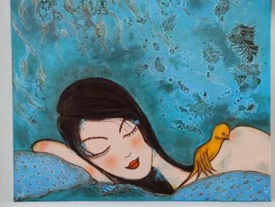 - Kto nie lubi babiego lata? Babie lato to dla mnie kolor złota… i maleńkie pajączki. To taka magia natury, przyrody, która nas otacza. Tworzą one złote nici, które tak pięknie fruną w powietrzu. Niektóre pajęcze nici przyklejają się tak mocno do dłoni, że trudno je odkleić, a inne potrafią przytulić się do ubrania. Myślę o nich jak o magicznej biżuterii. Jesienią małe pajączki przędą grubą nić, która pełni rolę paralotni. Pasem startowym są drzewa, krzewy, wysokie trawy. Pajączek staje na odnóżach wystawiając najwyżej jak się da odwłok i zaczyna snuć złotą nić. Kiedy jest ona wystarczająco długa, a porywy wiatru odpowiednie, pajączek wznosi się do góry. W moich pracach malarskich, gdy się przyjrzycie dostrzeżecie złote małe pajączki. Są one jakby dekoracją, ozdobą przedstawionej postaci kobiecej – mówi artystka.