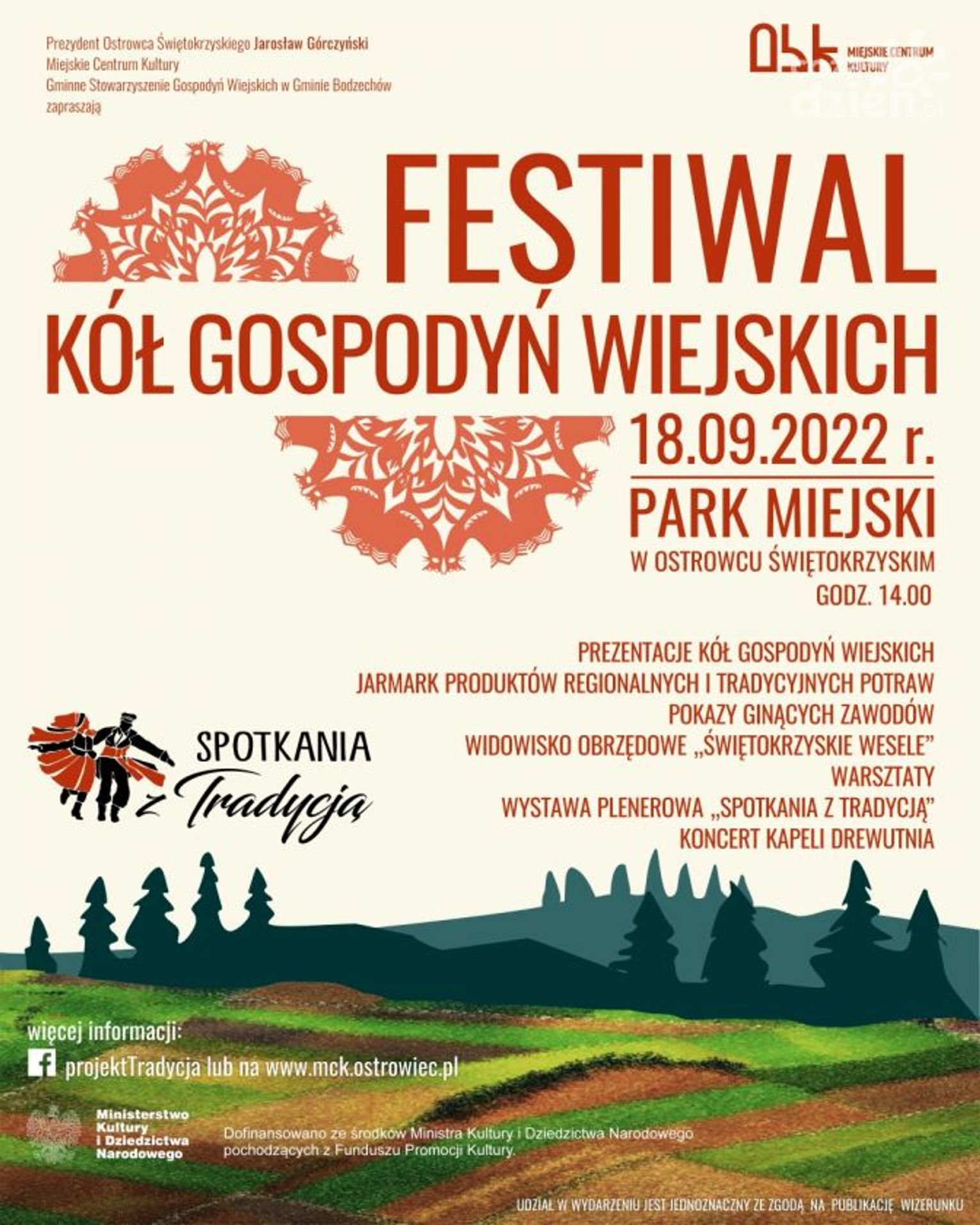 Festiwal Kół Gospodyń Wiejskich organizowany jest w ramach realizacji projektu Spotkania z Tradycją z programu Kultura ludowa i tradycyjna. Dofinansowano ze środków Ministra Kultury i Dziedzictwa Narodowego pochodzących z Funduszu Promocji Kultury – państwo.