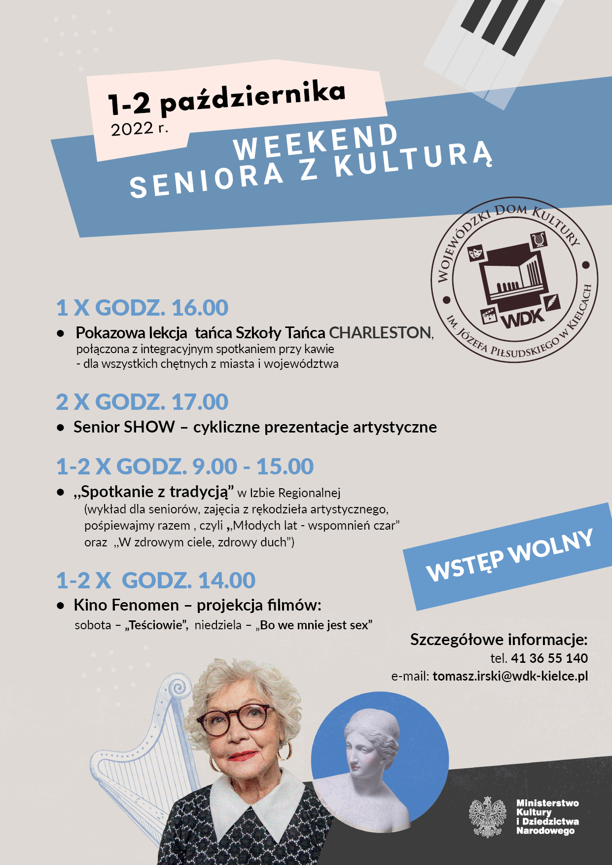 1-2 października, godzina 14.00 - kino Fenomen – projekcja filmów (sobota – „Teściowie”, niedziela - „Bo we mnie jest sex”)