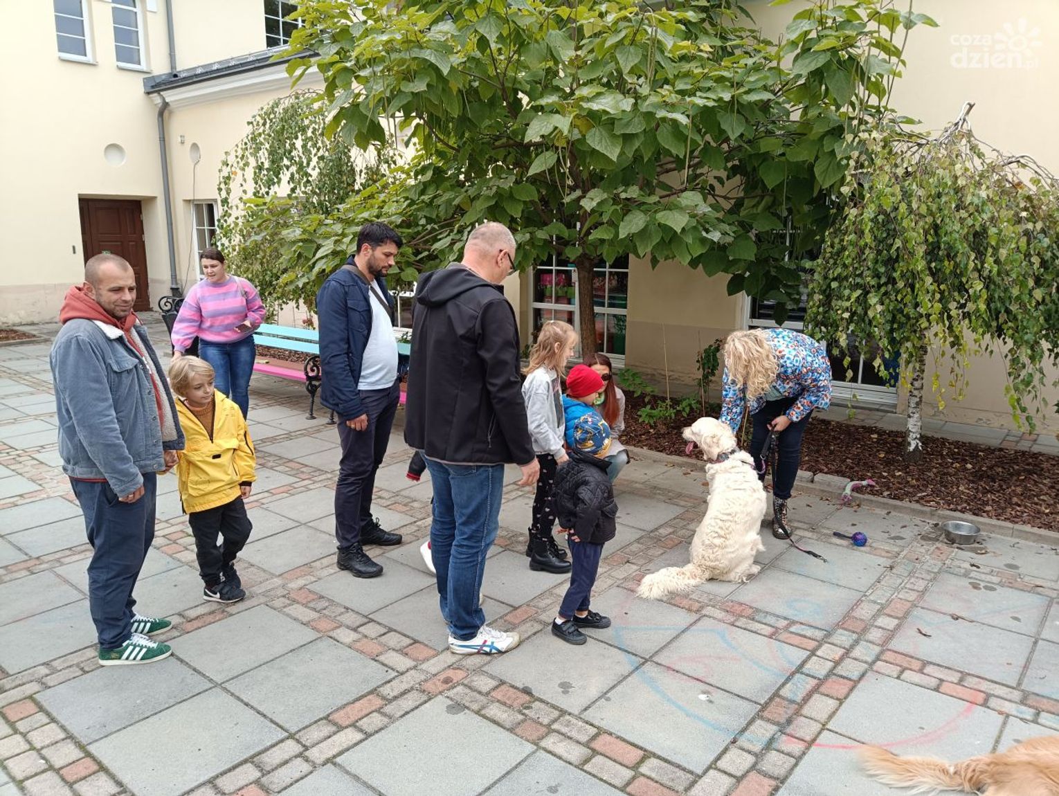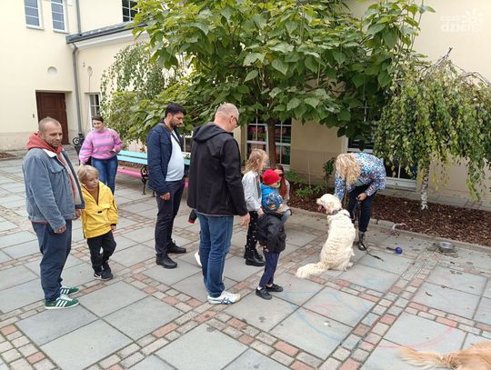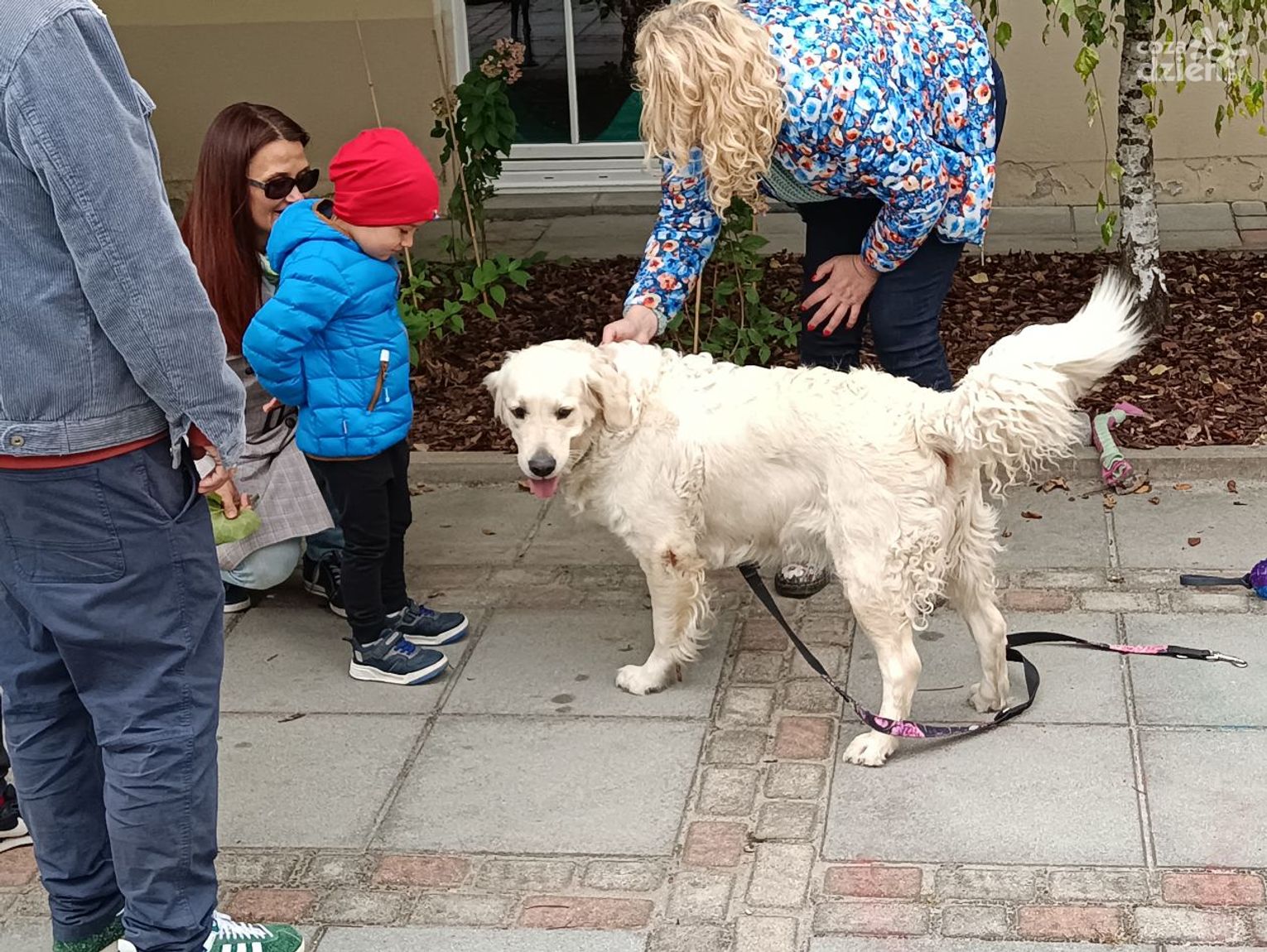 Wraz z dwoma pięknymi psami rasy Golden Retriver instruktorki tłumaczyły dzieciom, a także dorosłym przede wszystkim zasady bezpiecznego i pełnego szacunku kontaktu z tymi zwierzętami.