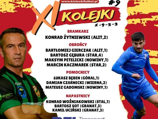Po dwóch przedstawicieli mają Alit Ożarów, GKS Zio-Max Nowiny, Granat Skarżysko i Star Starachowice. Lider znów zagrał na zero z tyłu, a świetnie na środku obrony prezentował się Bartosz Gębura. Na lewej flance nie zawiódł Marcin Kaczmarek, weteran, były reprezentant Polski. Układ sił w 11 kolejki nr 9: Alit Ożarów 2, GKS Zio-Max Nowiny 2, Granat Skarżysko 2, Star Starachowice 2, Góral Górno 1, Stal Kunów 1, Wierna Małogoszcz 1.