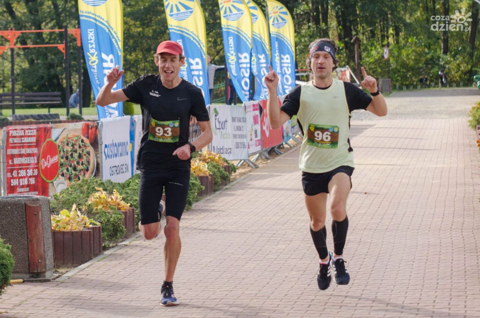 Ostatnią „ćwiartkę” do maratonu na raty zaliczyło 57 osób. Najszybciej trasę liczącą nieco ponad 10km pokonał Sylwester Lepiarz (00:37:54), a w pokonanym polu zostawił Hubertą Grzywnę z Nieprowic (00:37:56) i Michała Kolaszta z Iłży (00:39:47). Wśród kobiet triumfowała Ola Korulczyk z Bałtowa (00:46:51), przed ostrowczanką Kingą Myśliwską (00:47:06) i Beatą Szymczyk z Sienna (00:50:31). Kończącym rywalizację w półmaratonie na raty biegu na ok. 5km zwyciężył Sylwester Lepiarz (00:16:21), przed ostrowczaninem Rafałem Gontarczykiem (00:17:15) i Michałem Jagieło z Lubieni (00:18:59). Wśród kobiet najszybsza była Sonia Baidalinova (00:25:29), przed ostrowczanką Marleną Piętą (00:25:39), a trzecia ponownie tego dnia była Beata Szymczyk (00:25:41). Marszowi Nordic Walking w ramach kończącej cykl 6. rundy przyglądał się… licencjonowany sędzia reprezentujący Polskie Zrzeszenie Nordic Walking Paweł Gutkowski. Do Ostrowca Świętokrzyskiego przyjechał gościnnie i jego rola w zawodach ograniczała się do obserwacji i ewentualnych uwag przekazywanych uczestnikom marszu dotyczących poprawnej techniki. Marsz zgodnie z regulaminem imprezy nie był oceniany. Najszybciej pokonały go ostrowczanka Ewelina Zając (00:36:59), krakowianka Blanka Flisek (00:37:17) oraz reprezentująca Ostrowiec Świętokrzyski Anna Kępczyńska (00:38:32). Wśród panów jako pierwsi na mecie zameldowali się Antoni Maciejko (00:39:19), Sebastian Giez (00:39:32) i Waldemat Fałdrowicz (00:39:51) – cała trójka z Ostrowca Świętokrzyskiego. W biegach najmłodszych wzięło udział równo pół setki dzieci. Najliczniejszym okazał się bieg przedszkolaka, w którym wystartowało 23 małych adeptów biegania. Patronat nad imprezą sprawują Prezydent Ostrowca Świętokrzyskiego Jarosław Górczyński i Nadleśnictwo Ostrowiec Świętokrzyski. Patronami medialnymi są m.in. Rekord - Radio Świętokrzyskie oraz portal internetowy Swietokrzyskie.CoZaDzien.pl
