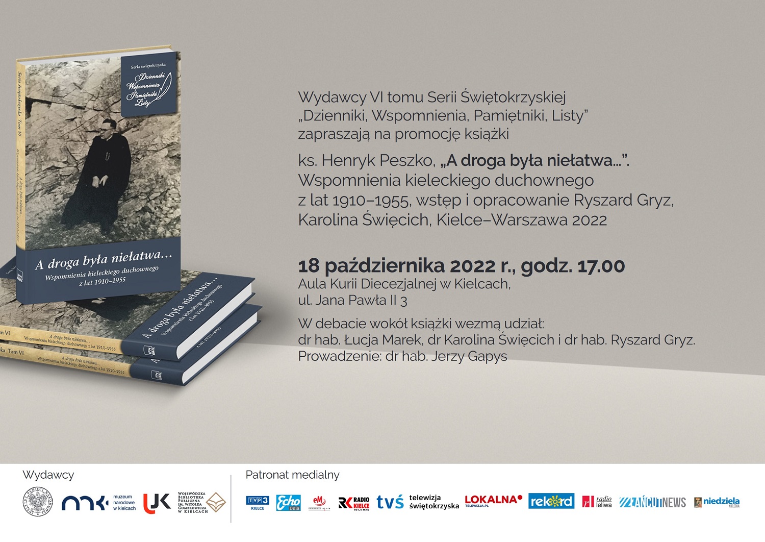 Patronat medialny nad promocją książki: TVP3 Kielce, Echo Dnia, Radio eM Kielce, Polskie Radio Kielce, Telewizja Świętokrzyska, Lokalna.TV, Radio Rekord Kielce, Radio Leliwa, Łańcut News, Niedziela Kielecka.