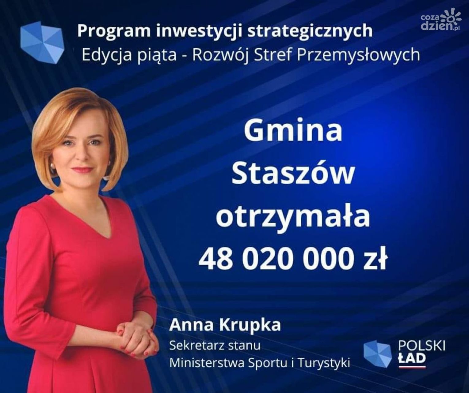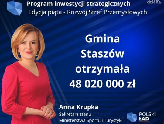 -" Te środki można potraktować jako etap przygotowawczy do realizacji bardzo istotnej, historycznej inwestycji w Staszowie, a mianowicie terminalu przeładunkowego, który powstanie w oparciu o linię szerokotorową" - informuje Anna Krupka, wiceminister sportu, poseł na Sejm RP, woj. świętokrzyskie PiS.