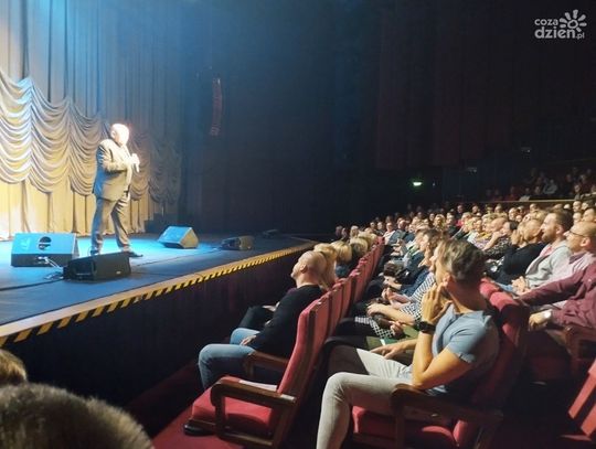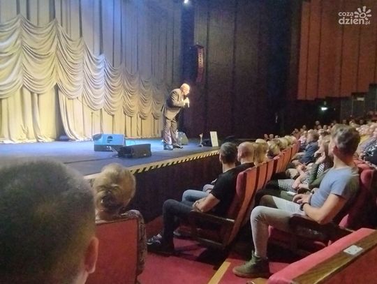 Sala Kieleckiego Centrum Kultury w piątkowy wieczór była wypełniona po brzegi. A wystarczył tylko jeden człowiek i mikrofon. Marcin Daniec nawiązał świetny kontakt z publicznością, która co rusz wybuchała gromkim śmiechem i nie pozwoliła mu zejść ze sceny.