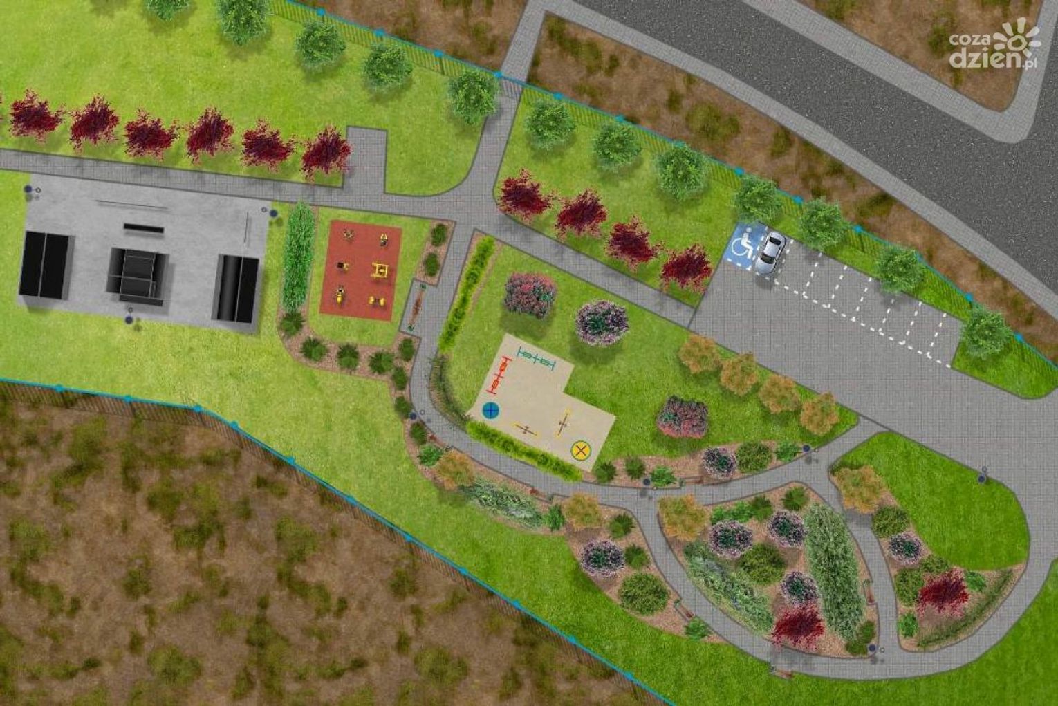 W Kunowie zostanie otwarta strefa relaksu, To połączenie placu zabaw dla dzieci z siłownią zewnętrzną dla dorosłych z urządzeniami dla osób z niepełnosprawnościami czy skate parkiem dla młodzieży. Ale to także park miejski w wersji mini.