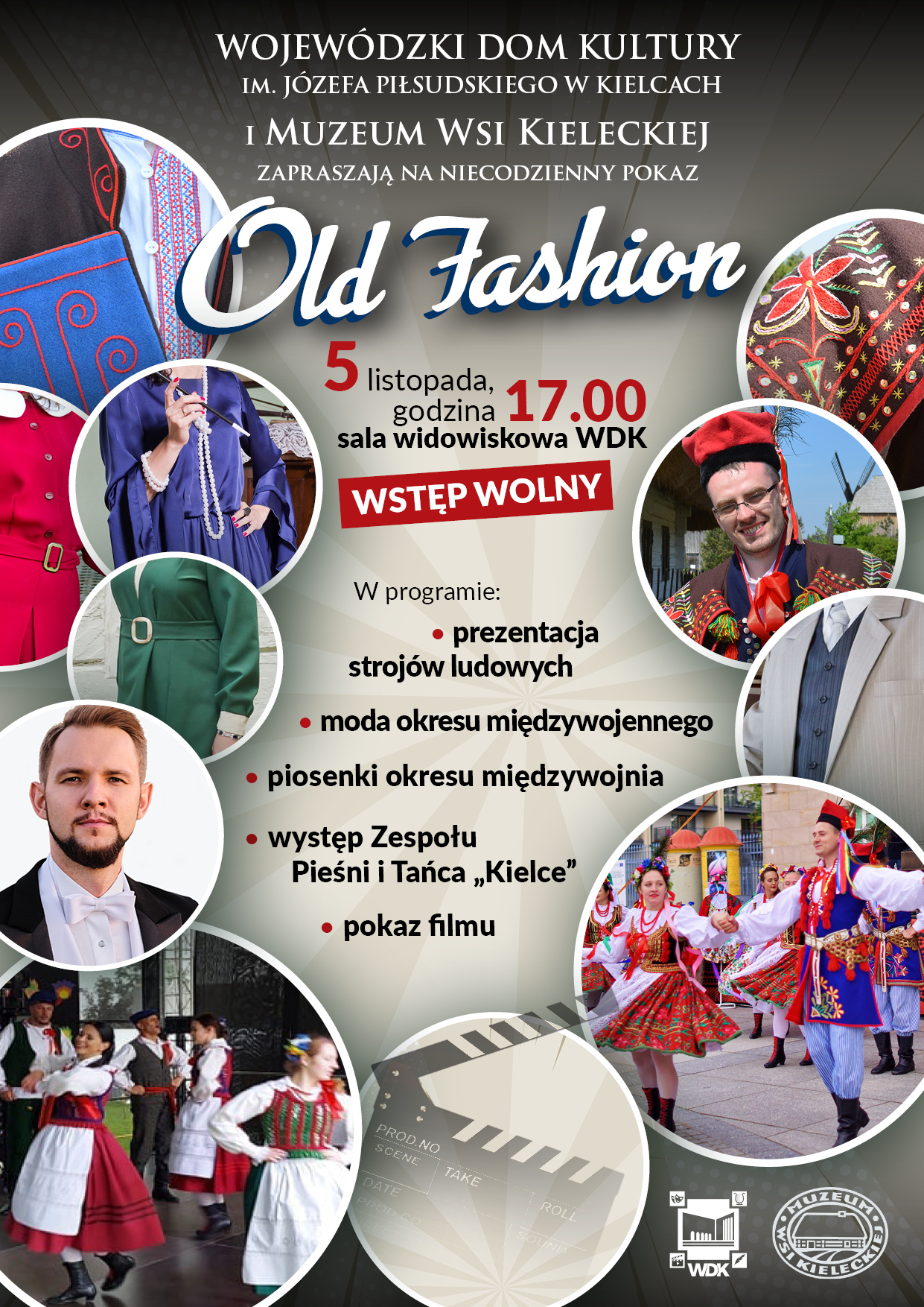 Niecodzienny pokaz mody "Old Fashion" odbędzie się 5 listopada o godzinie 17.00 w sali widowiskowej WDK. Wstęp wolny. Organizatorami wydarzenia są Wojewódzki Dom Kultury w Kielcach i Muzeum Wsi Kieleckiej.