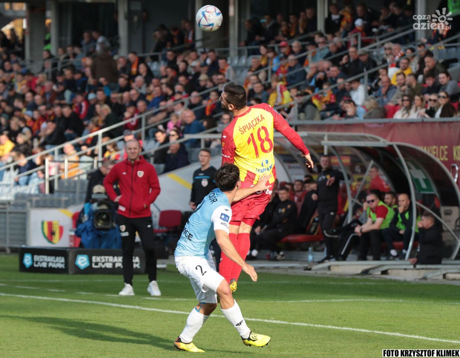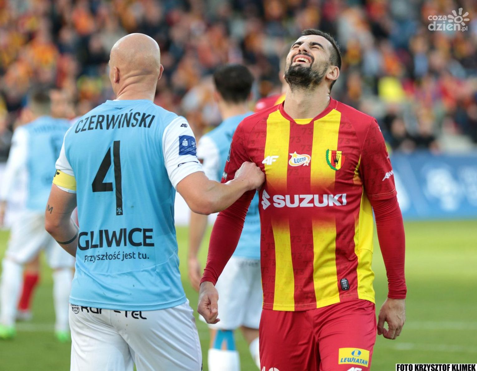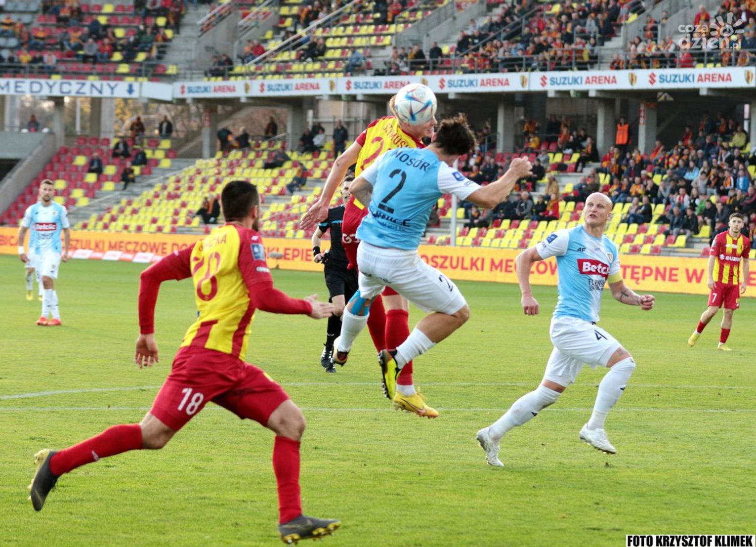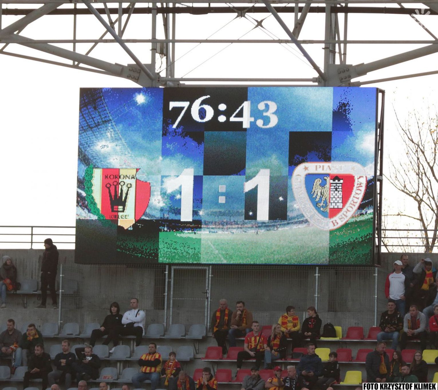 Przez długi czas w drugiej odsłonie koroniarze wybijali piłkę, przejmowali ją goście i stwarzali okazje, najlepsze mieli Kamil Wilczek i Arakdiusz Pyrka. Ciężko się oglądało tą kopaninę, ale w końcu gliwiczanie doprowadzili do wyrównania. Felix do Michała Chrapka, ten do Alexandrosa Katranisa, a po jego dośrodkowaniu gospodarze mijali się z piłką. Nie minął się Wilczek i lewą nogą wykonał to, czego wymaga się od napastnika.