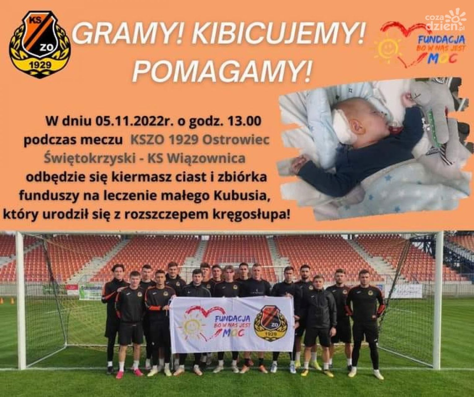 Zbiórka charytatywna na meczy KSZO 1929 Ostrowiec z KS Wiązownicą. W trakcie meczu będzie się odbywał kiermasz ciast i prowadzona będzie zbiórka pieniędzy na leczenie 1,8 rocznego Kubusia z gminy Ćmielów u którego stwierdzono rozszczep kręgosłupa i przepuklinę oponowo-rdzeniową. Chłopiec przeszedł już kilka operacji, co przywróciło częściową sprawność nóg. Niestety pojawiły się komplikacje i konieczność kolejnych zabiegów operacyjnych. Kubuś musi być cały czas rehabilitowany, by móc chodzić. Zbiórka pieniędzy prowadzona jest przez fundację Bo w nas jest moc i Pomagam Pl. A mecz z charytatywną zbiórką już jutro, w sobotę 5 listopada o godzinie 13 na stadionie KSZO Ostrowiec przy ulicy Świętokrzyskiej.
