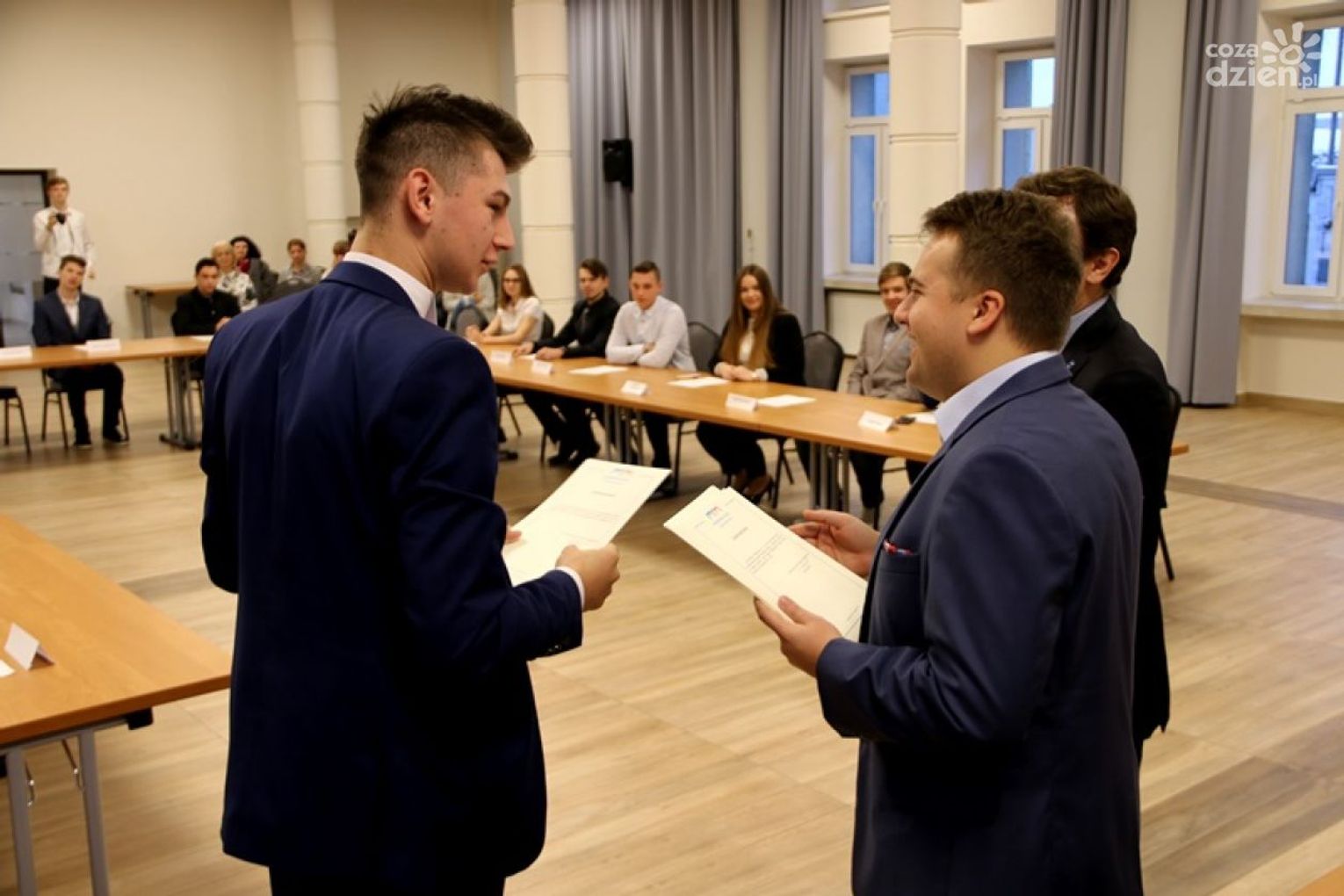 Czwartkową sesję inauguracyjną rozpoczął przewodniczący Rady Miejskiej Michał Walendzik. Gościem obrad był prezydent Marek Materek - obaj panowie wręczyli młodym radnym zaświadczenia o wyborze na radnego.
