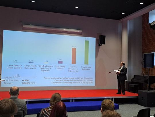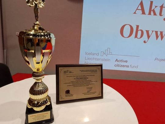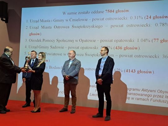 Uroczysty grawerton i puchar trafił na ręce delegacji, która wraz z Wójtem Gminy Jerzym Murzynem reprezentowała urząd podczas oficjalnego podsumowania projektu 16 listopada w Ostrowieckim Browarze Kultury.