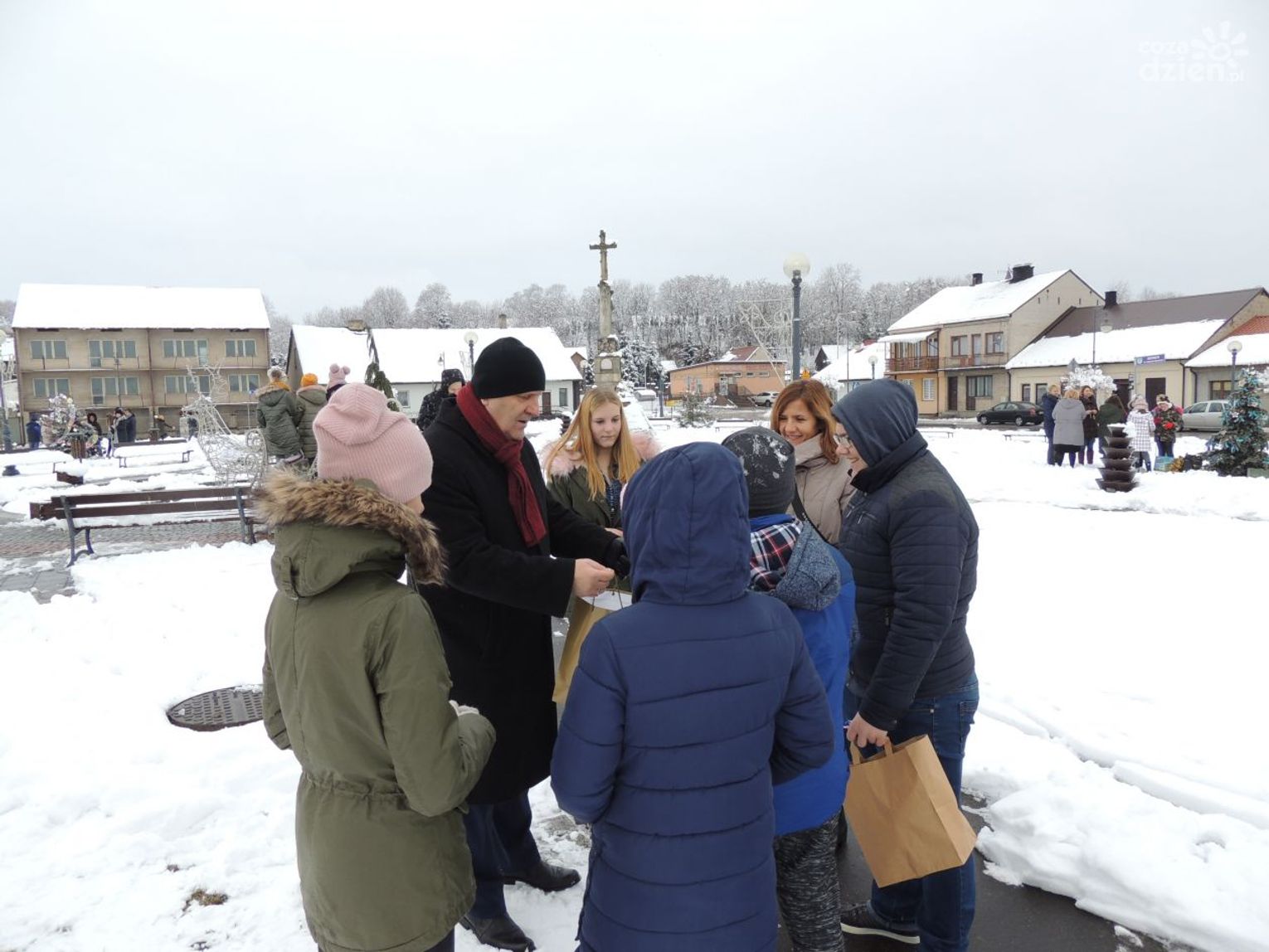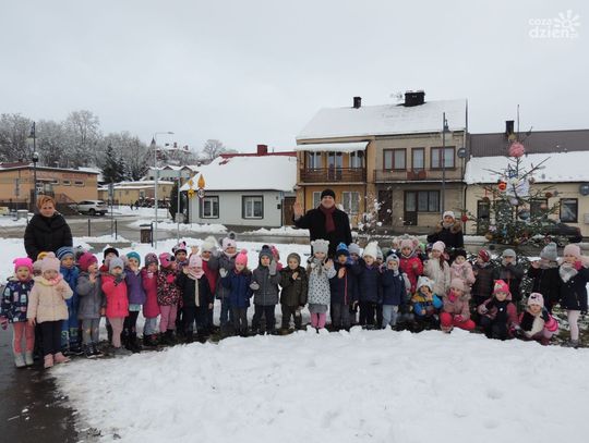 W czwartek (13 grudnia) uczniowie ze wszystkich szkół z terenu gminy oraz przedszkolaki z Kunowa przybyli z własnoręcznie wykonanymi ozdobami choinkowymi, aby ustroić przygotowane specjalnie dla nich drzewka. W ubieraniu choinek pomagał burmistrz Lech Łodej, który zawieszał ozdoby na najwyższych gałązkach.