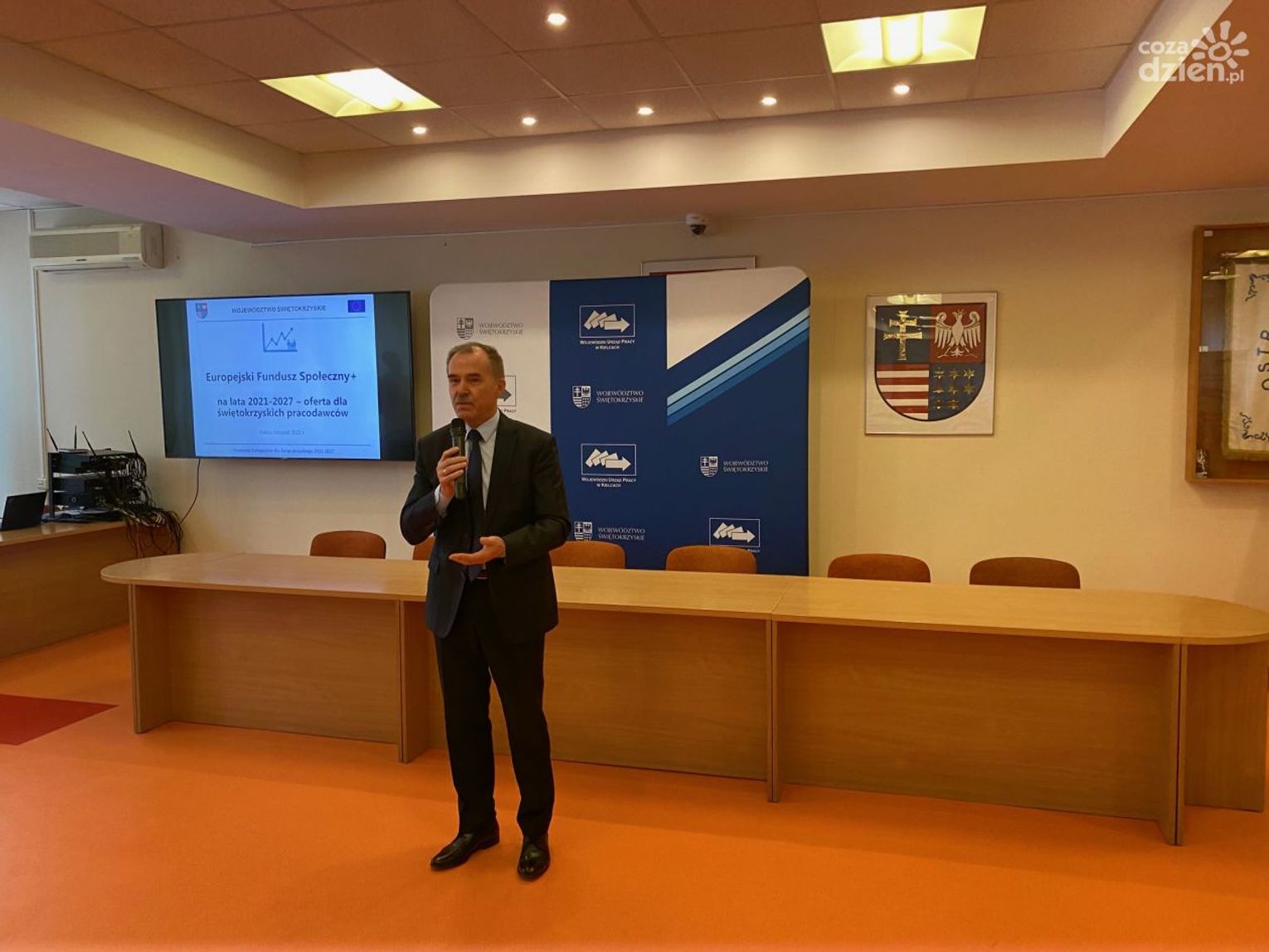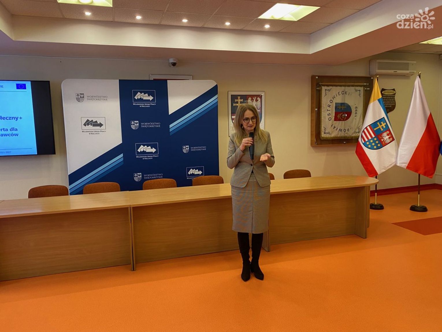 Spotkanie, które odbyło się w ostrowieckim starostwie zorganizowało Stowarzyszenie Lokalna Grupa Działania "Krzemienny Krąg" wspólnie z Wojewódzkim Urzędem Pracy w Kielcach.