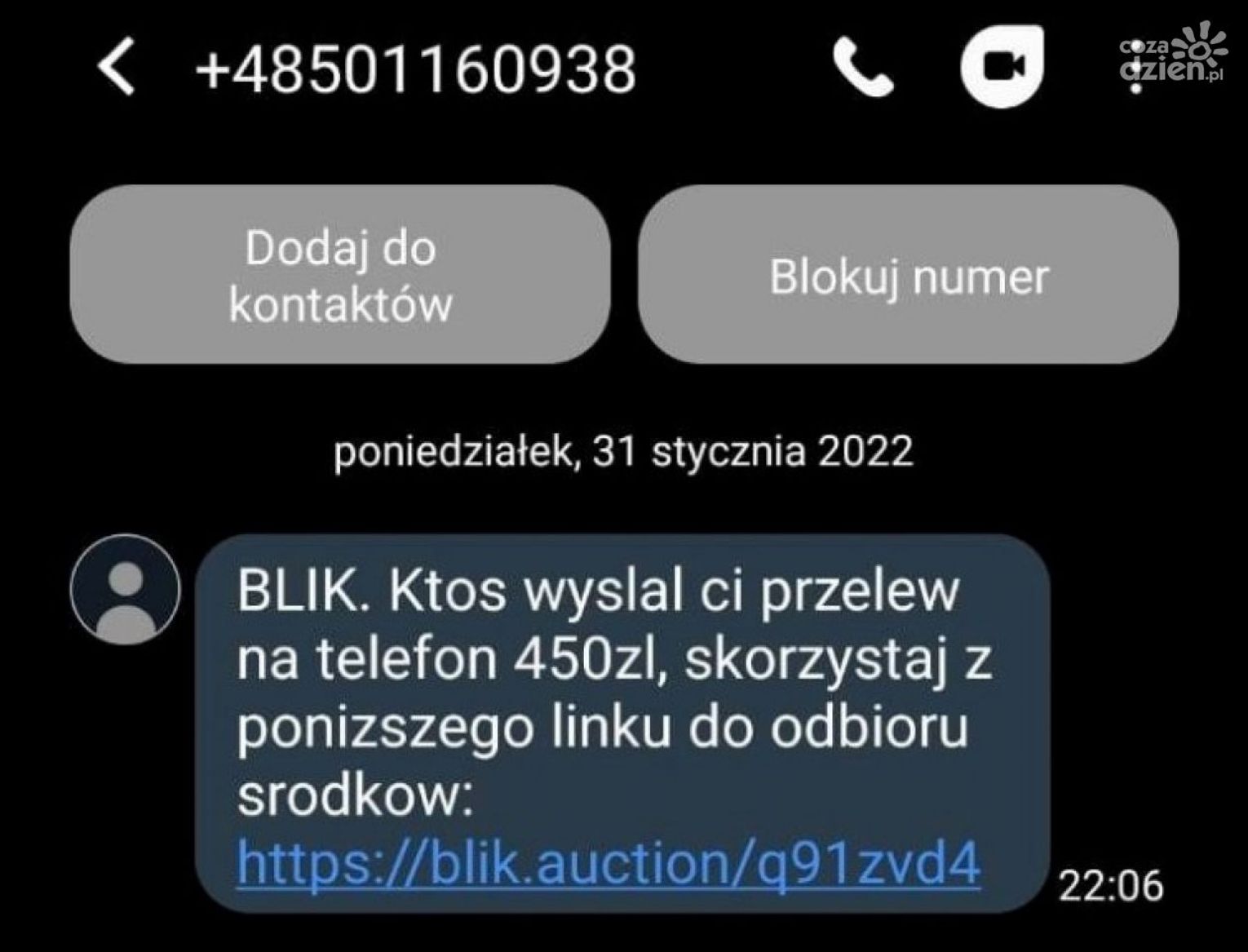 "Jak wynikało z relacji zgłaszającej za pomocą komunikatora społecznościowego skontaktowała się z nią osoba podająca się za jej szwagra. Z treści wiadomości wynikało, że mężczyzna potrzebował pomocy finansowej i poprosił kobietę o wygenerowanie kodu BLIK, by opłacić zakupy. Niczego nie podejrzewająca 34-latka wygenerowała kod, po czym zatwierdziła operacje na kwotę 450 złotych na swoim rachunku bankowym. Po chwili kiedy znów otrzymała podobną wiadomość nabrała podejrzeń, że ma do czynienia z cyberprzestępcami i natychmiast skontaktowała się z członkiem rodziny, który zaprzeczył, aby miał prosić ją o jakikolwiek pomoc finansową" relacjonowała podkom. Ewelina Wrzesień, oficer prasowy KPP w Ostrowcu Świętokrzyskim.