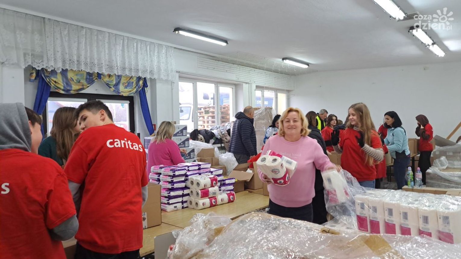 -'Idzie szybko, idzie dobrze ale ciągle cały czas pomału. 4800 paczek to są dwa tiry po 30 palet, My to ciągle mamy nie podzielone, stąd cały czas wystawiamy na stoły i pakujemy w paczki. Praca jest ciągła od samego rana, byłoby dobrze, gdybyśmy skończyli do soboty. Więc zapraszam cały czas wolontariuszy i ludzi dobrej woli do pomocy do pracy na Kilińskiego 26"- mówi Włodzimierz Stec jeden z koordynatorów tej akcji. A chętni mogą zgłaszać się na bezpośrednio do punktu pakowania, czyli siedziby spółdzielni Rozwój.