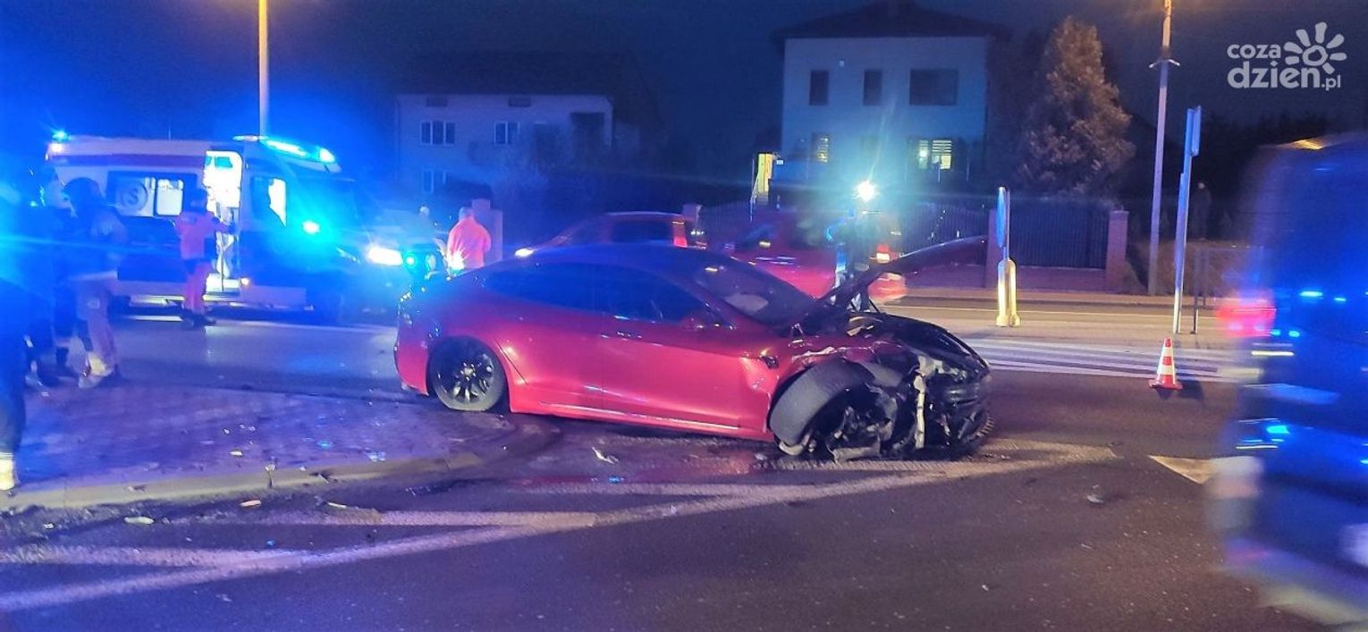 Kierujący teslą najprawdopodobniej nie ustąpił pierwszeństwa przejazdu osobowemu peugeotowi za kierownicą którego siedział 18-letni kierujący. W chwili uderzenia pojazdy przemieściły się i uderzyły w osobowe BMW za kierownicą którego siedziała 23-letnia kierująca. W wyniku tego zdarzenia do szpitala została zabrana pasażerka tesli. Wszyscy uczestnicy zdarzenia są trzeźwi, a w rejonie tego zdarzenia należy spodziewać się utrudnień przez najbliższe 1,5h ze względu na to że prawy pas ruchu w kierunku Kielc jest całkowicie zablokowany.