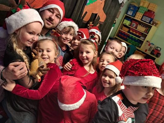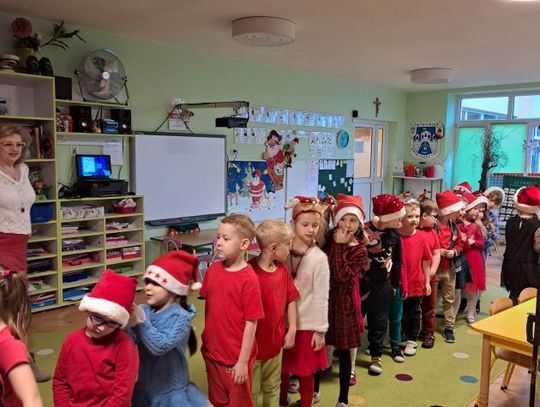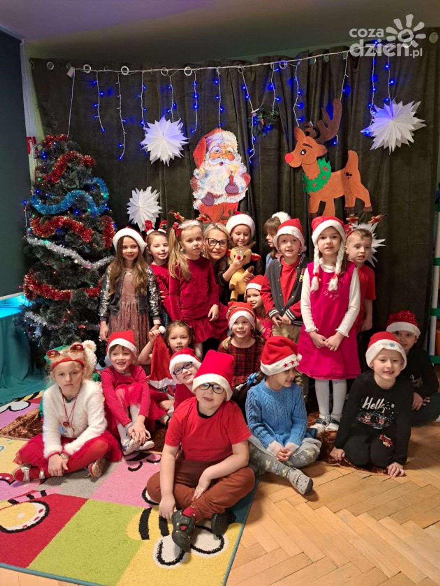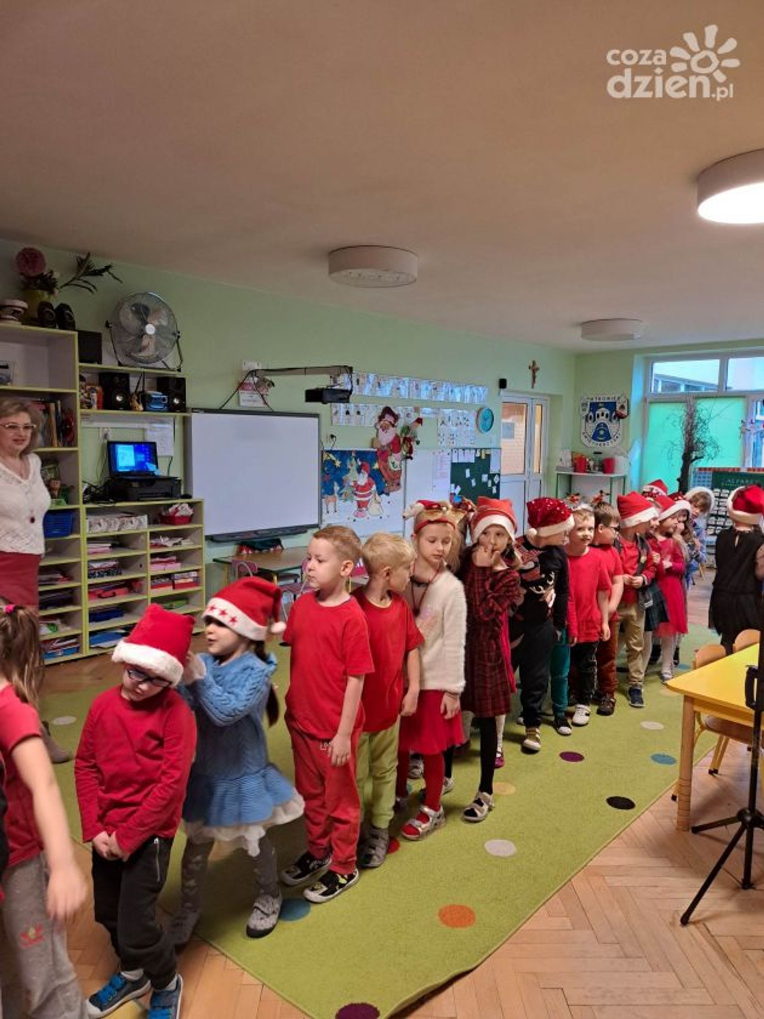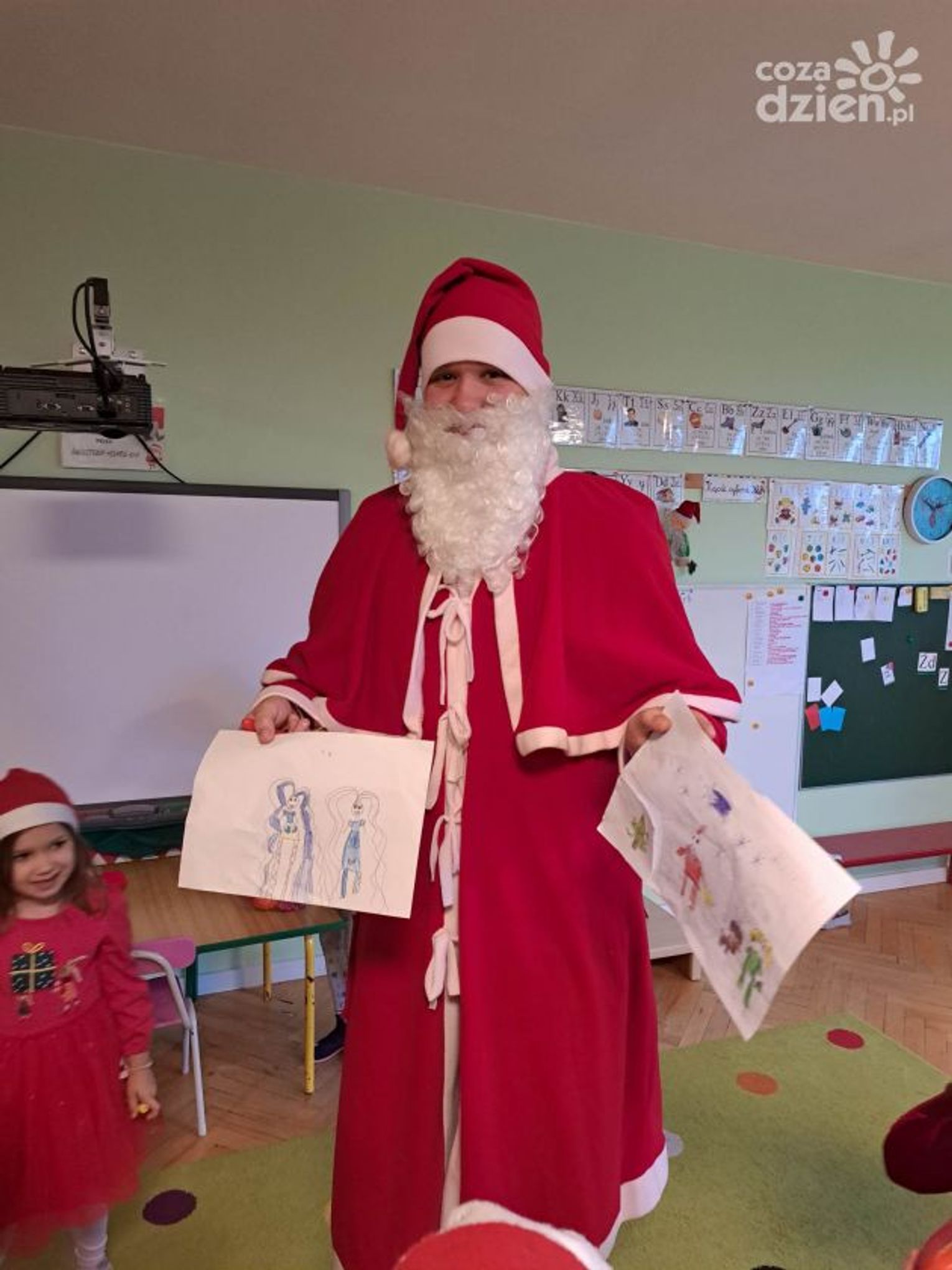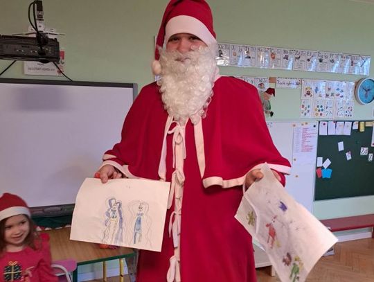 Dzieciaki dłużne Mikołajowi nie były i w podziękowaniu obdarowały go pierniczkami i swoimi rysunkami.