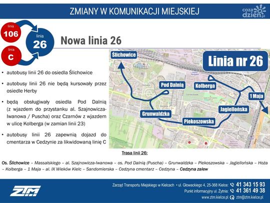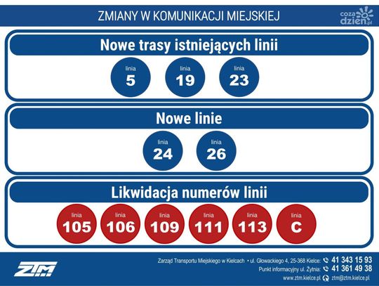 Podwyżki cen biletów i zmiany w kursowaniu tras autobusów z numeracją linii w Kielcach. Od stycznia zostanie zlikwidowane 5 numerów linii autobusowych, które zastąpią istniejące linie zmieniając trasy przejazdów autobusów miejskich. Zostaną też dodane nowe linie 24 i 26.