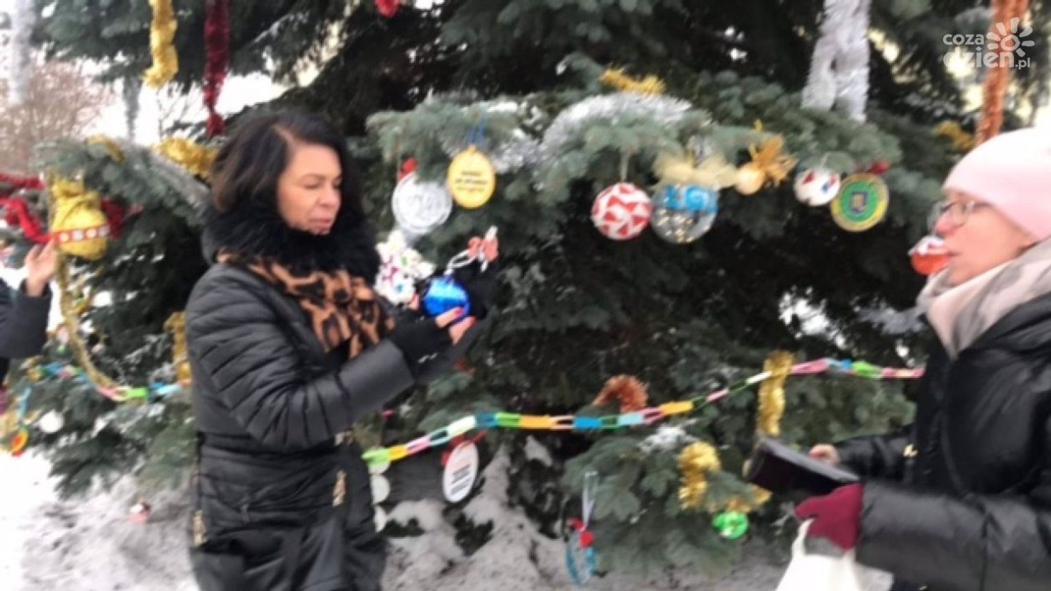 Kilkunastometrowa jodła rosnąca w osiedlu Ogrody stała się świątecznym drzewkiem. A to dzięki setkom ozdób jakie przyozdobiły jej z naturalnych powodów najniższe gałęzie. A różnorodność ozdób jakie przyozdobiły rozłożyste drzewko budzi zachwyt.
