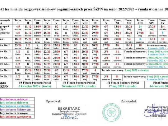 Świętokrzyski Związek Piłki Nożnej w Kielcach opublikował już wstępny terminarz rozgrywek piłkarskich na najbliższą rundę. Najwcześniej, bo już w pierwszy weekend marca na boiska powinni wybiec piłkarze występujący w III oraz IV lidze.