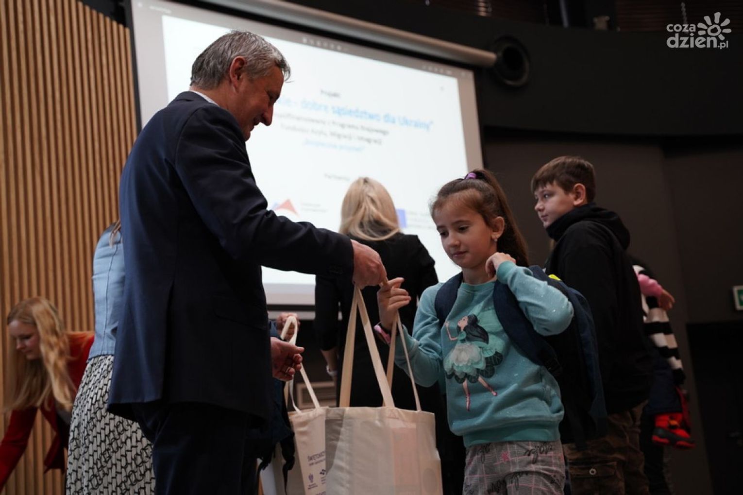 Wojewoda Zbigniew Koniusz przekazał zestawy podarunkowe z materiałami edukacyjnymi i sportowymi dla dzieci z Ukrainy. Wydarzenie w urzędzie wojewódzkim było częścią działań w ramach partnerstwa ze Stowarzyszeniem Integracja Europa – Wschód.