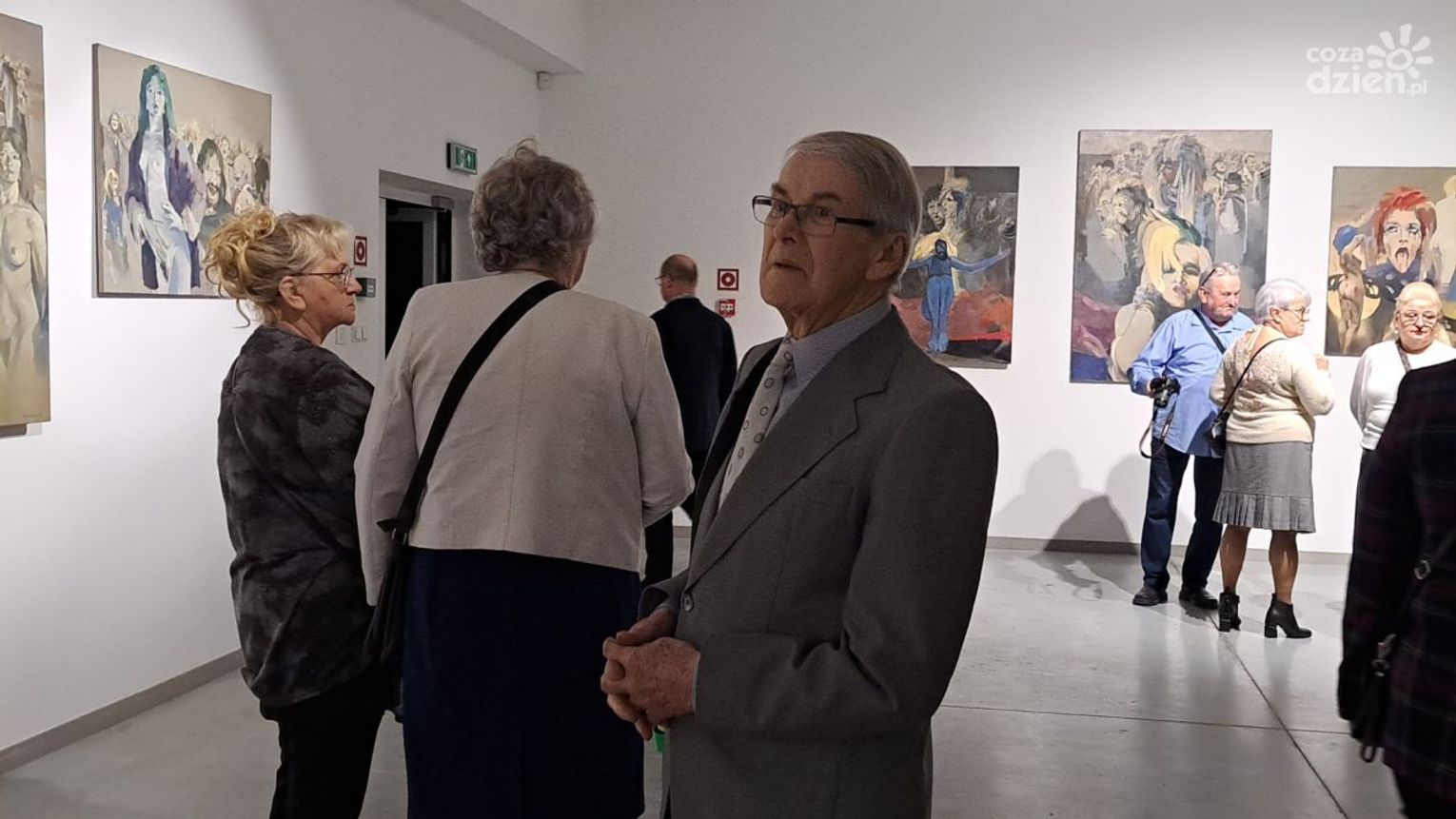 -"Kobiety dlatego, że to są wybrane obrazy z okresu mojego 80- lecia i malarstwa w tym czasie. A kobiety dominowały w moich obrazach zawsze. Bo kobieta to samo piękno. Pomimo, że zajmowałem się też abstrakcją, to zawsze lubię malować człowieka, i zawsze wokół człowieka te moje obrazy powstają"- mówił wyraźnie wzruszony Tadeusz Szypowski.