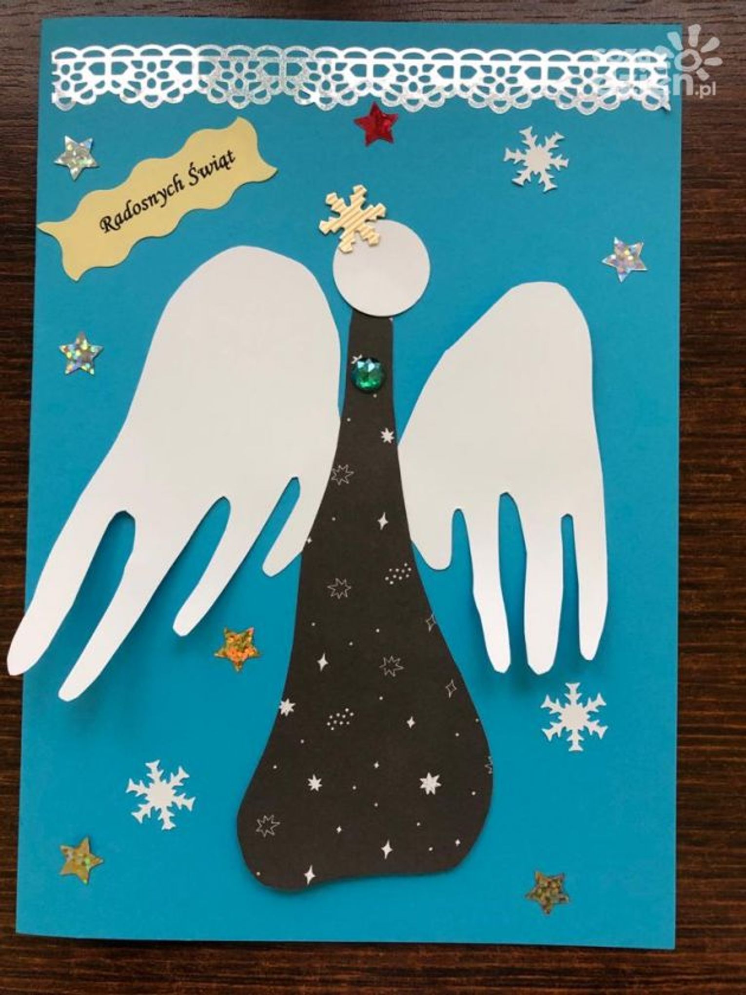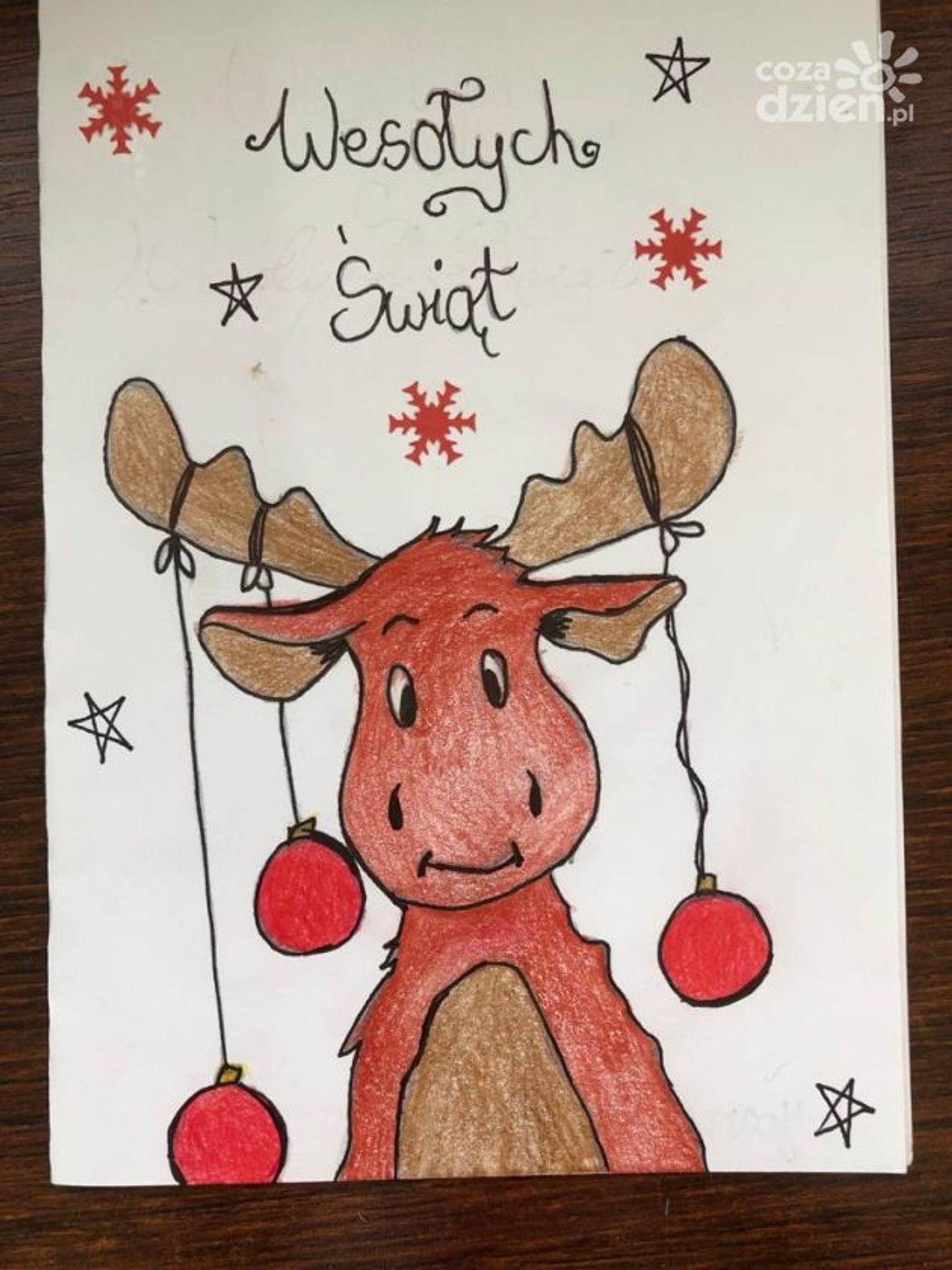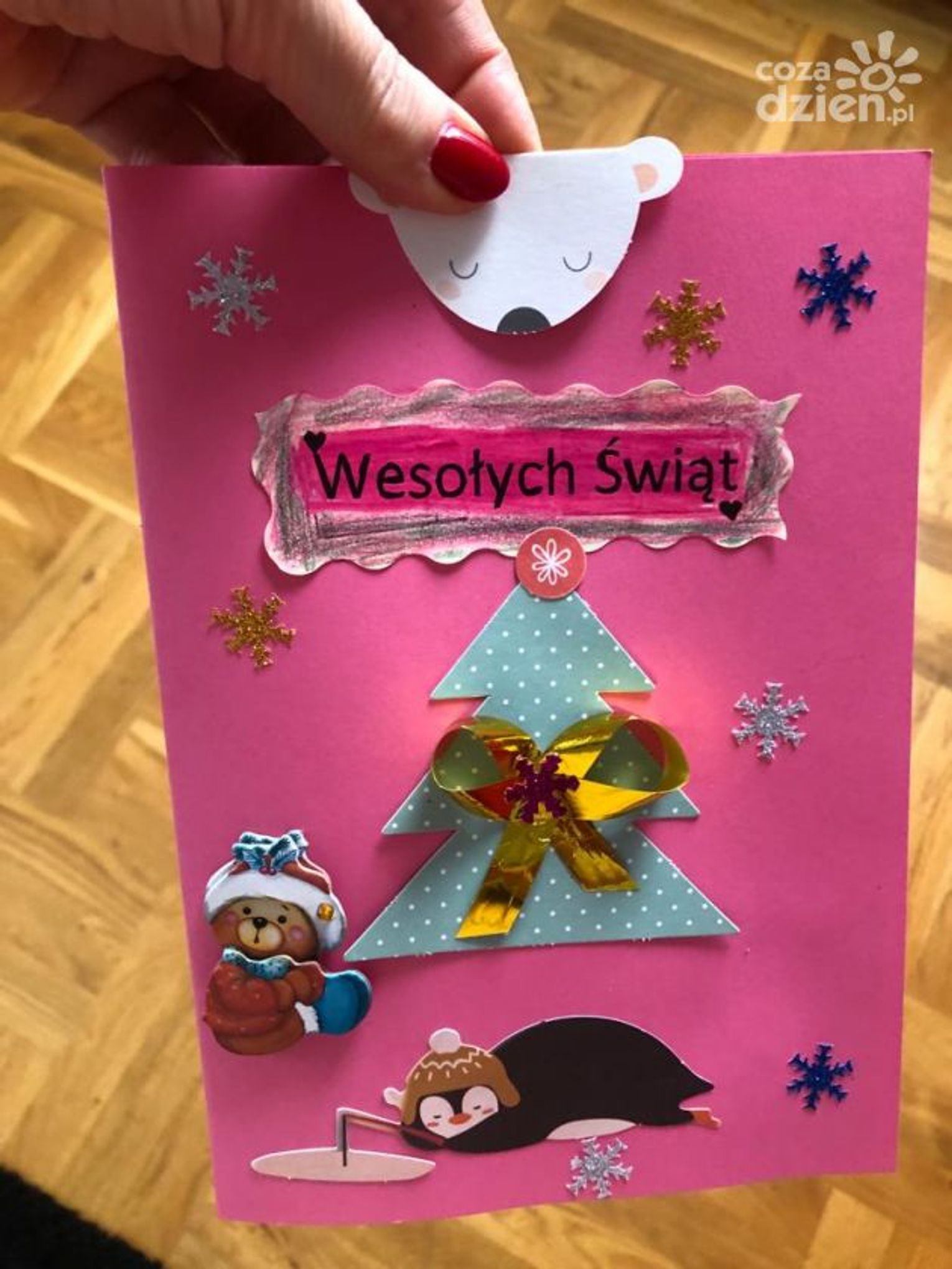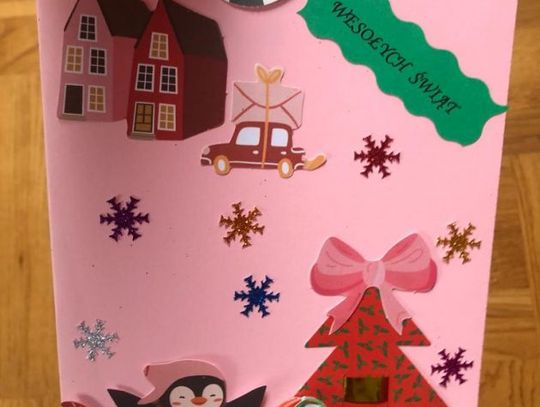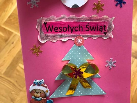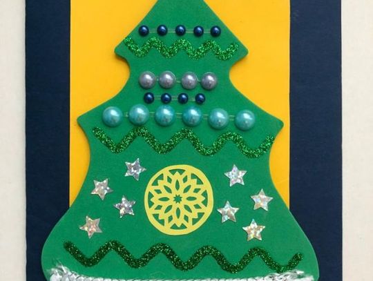 "Kartke wykonałem z pomocą Pani Kasi, która uczy mnie języka polskiego i matematyki w szpitalu. Kartka przedstawia śnieżną choinkę z gwiazdą i gwiazdkami na niebie" - mówi Ignaś, który brał udział w konkursie.