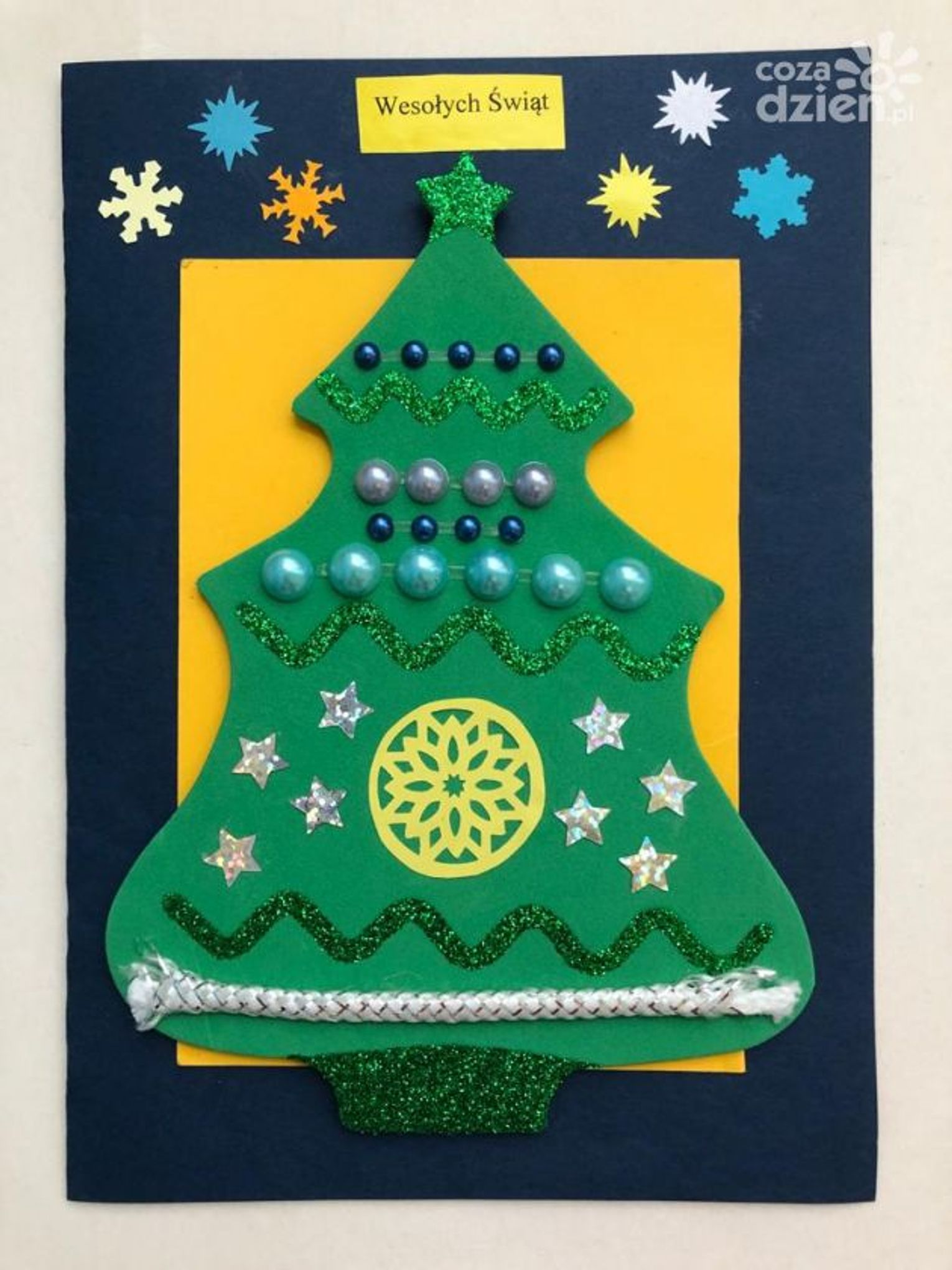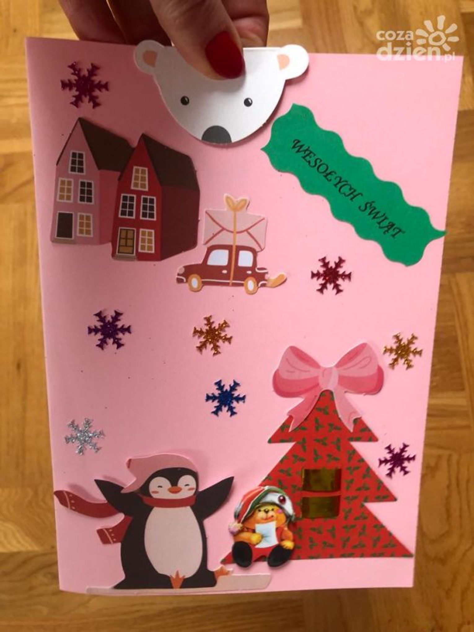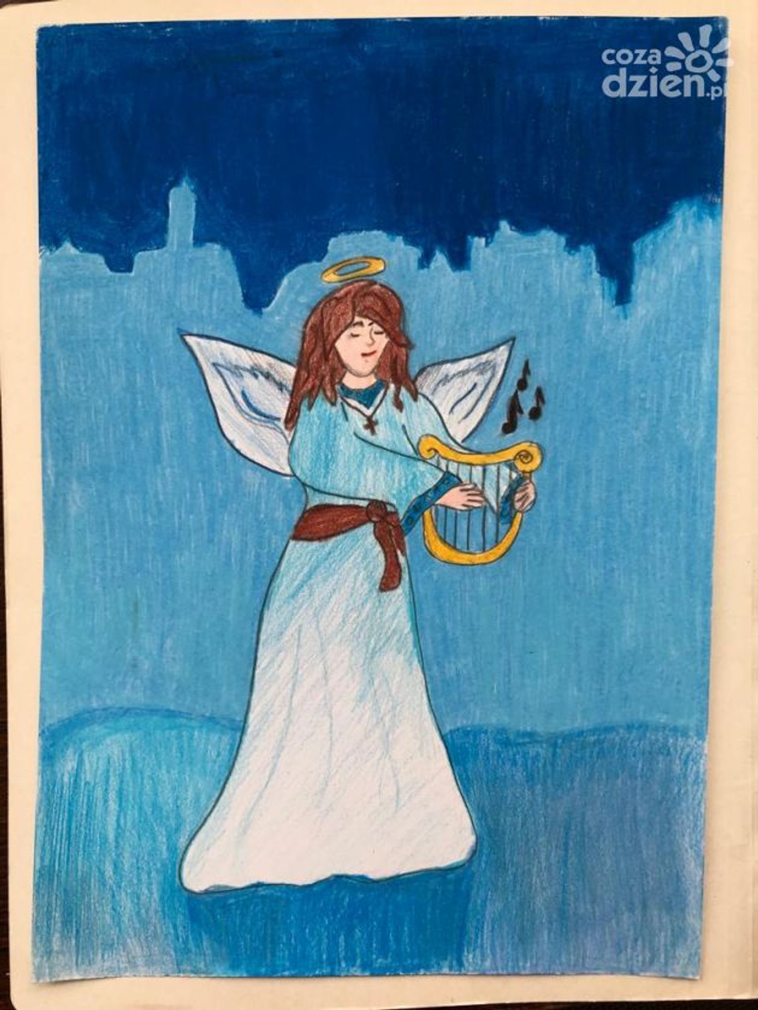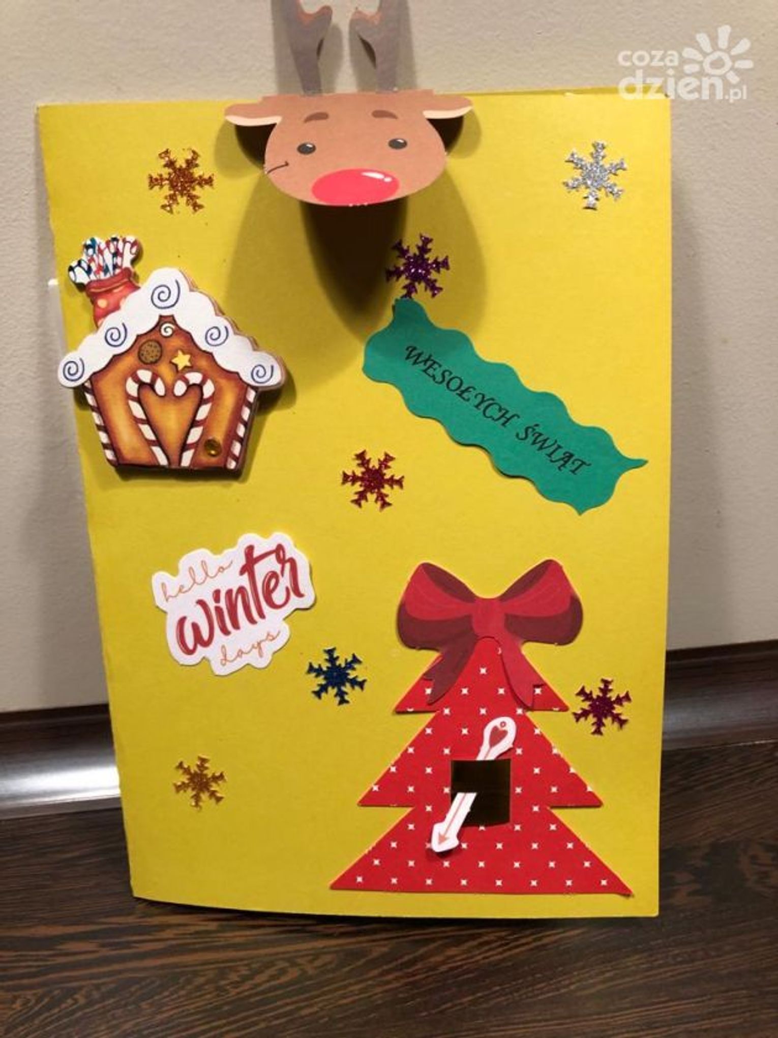"Kartke wykonałem z pomocą Pani Kasi, która uczy mnie języka polskiego i matematyki w szpitalu. Kartka przedstawia śnieżną choinkę z gwiazdą i gwiazdkami na niebie" - mówi Ignaś, który brał udział w konkursie.