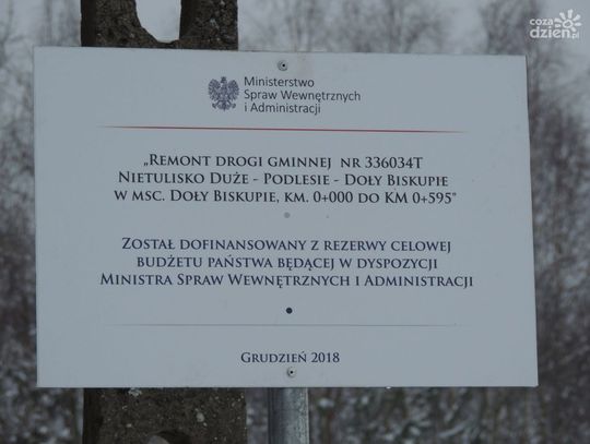 Prace remontowe wykonano na blisko 600-metrowym odcinku drogi. Inwestycja została dofinansowana ze środków Ministerstwa Spraw Wewnętrznych i Administracji. Dotacja rządowa wyniosła ponad 150 tys. zł. Wartość całkowita robót to 229,5 tys. zł.