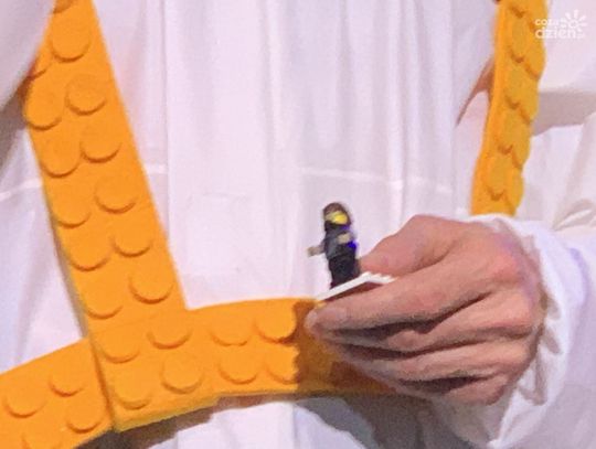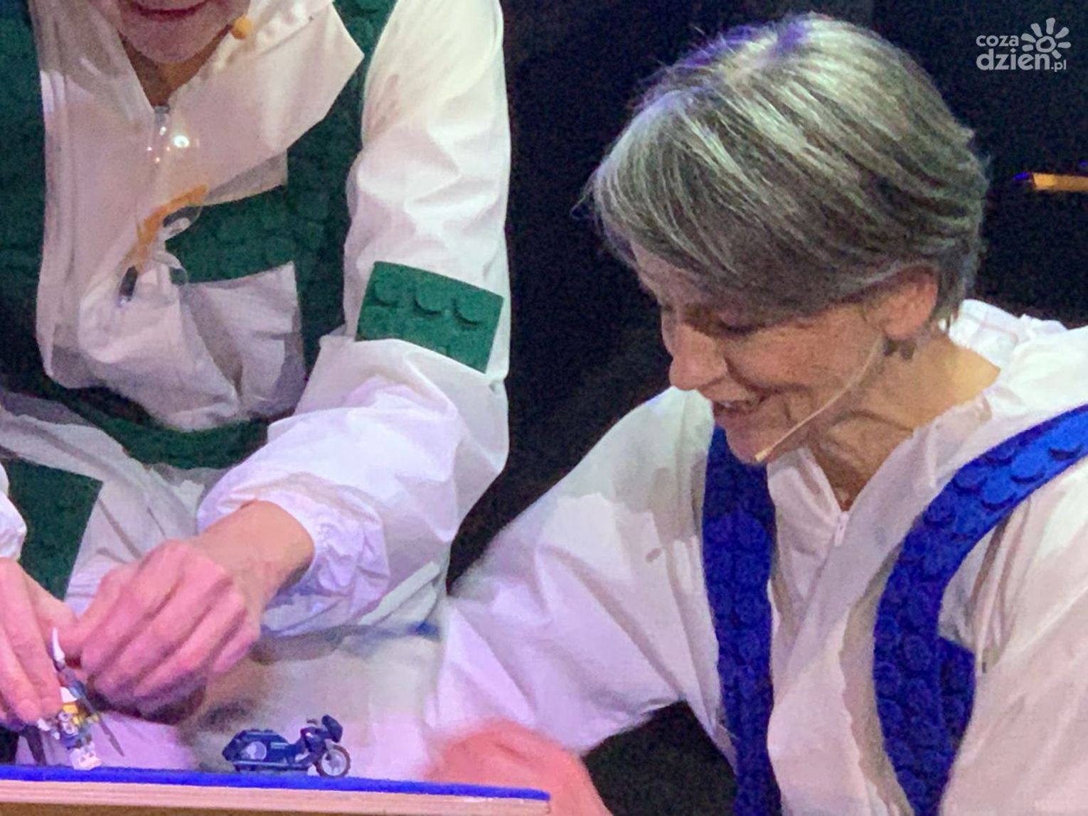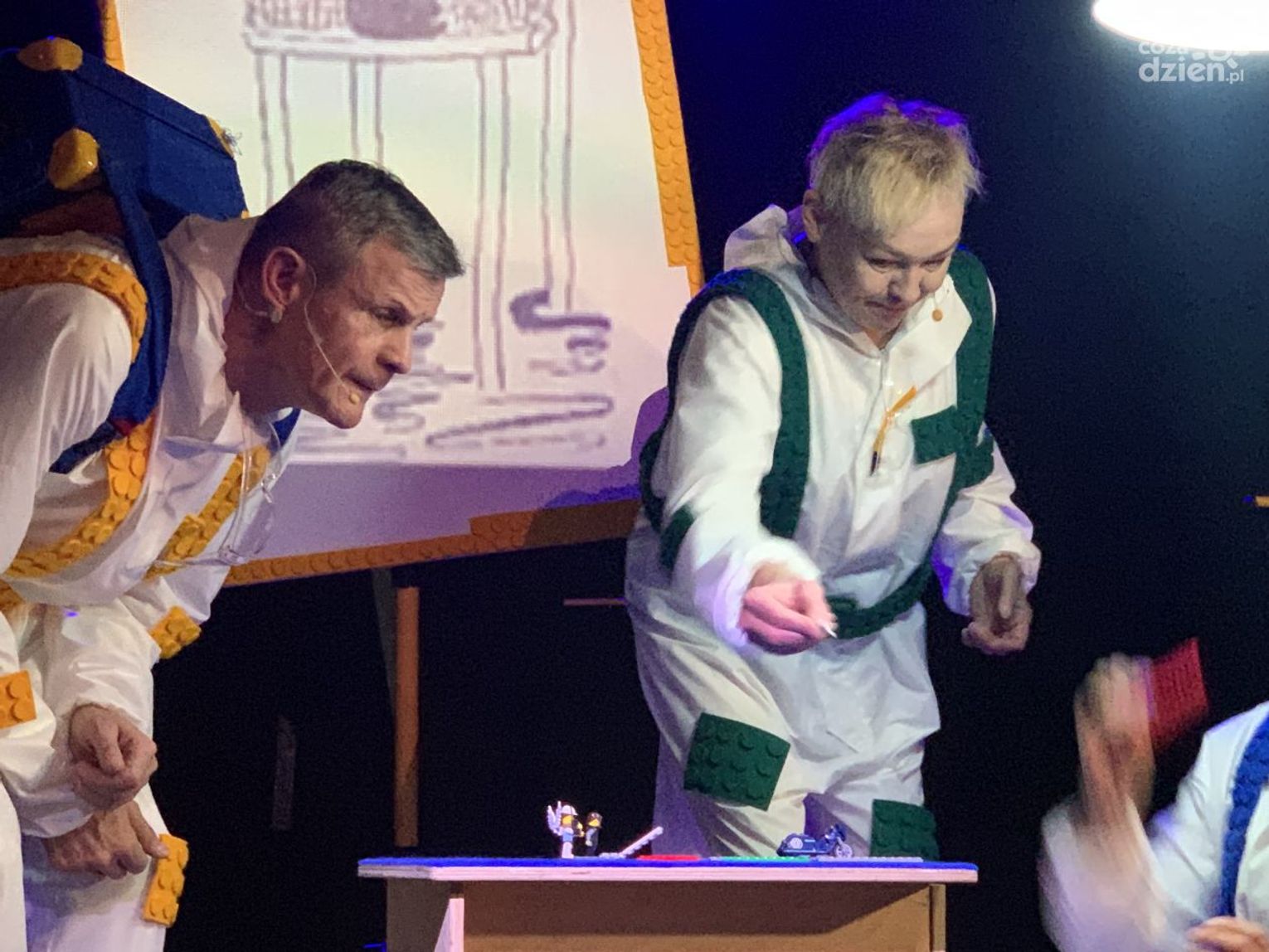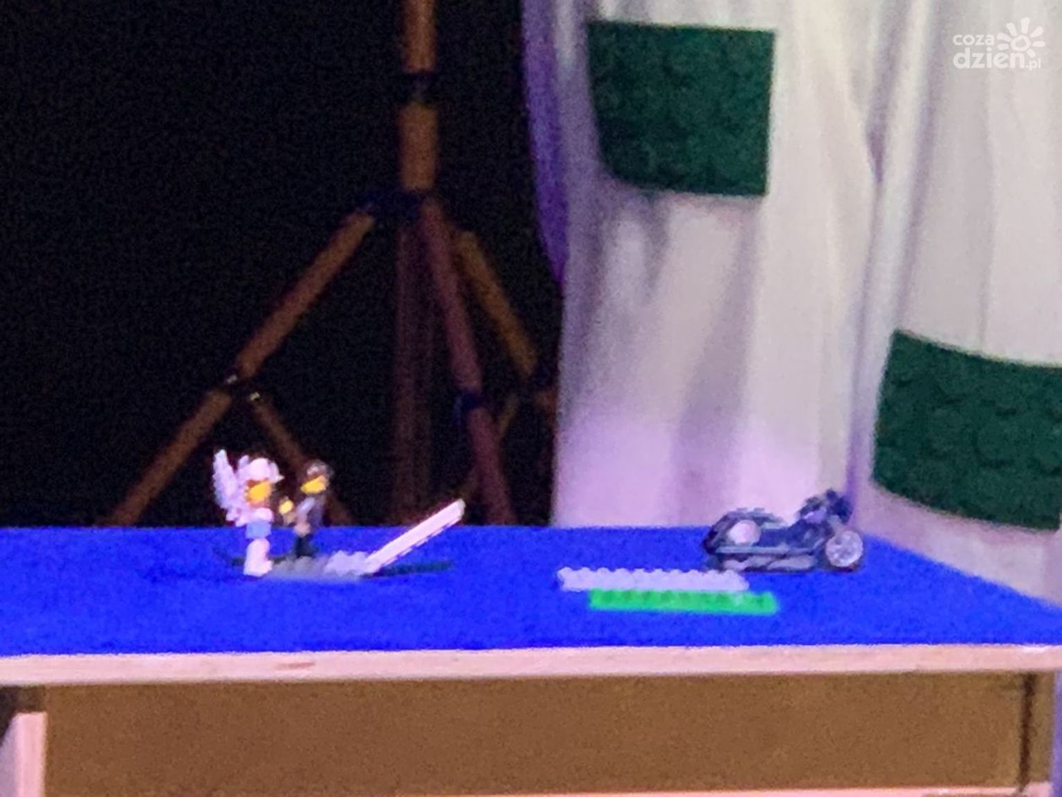 "Zdobyliśmy jakieś 16 kg klocków Lego z różnych wymieszanych zestawów. To było nasze narzędzie to projektowania scenografii, tworzenia tych światów, tworzenia charakterów postaci"- zdradził reżyser spektaklu Przemysław Żmiejko.