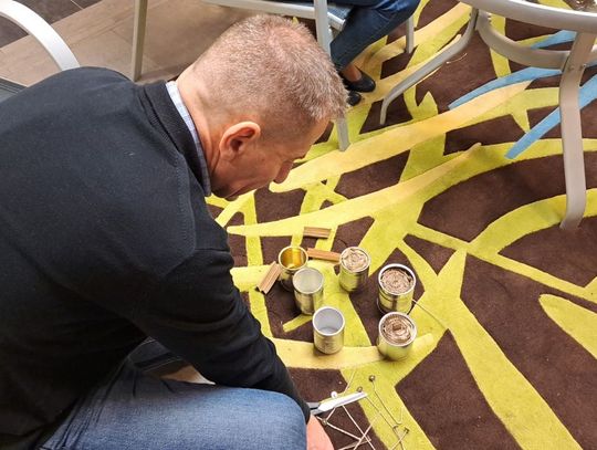 "- Puszki stalowe wypełniamy tekturą karbowaną, a po upchaniu tej tektury do puszek, zrobieniu knota zalewamy to woskiem. W ten sposób świeca okopowa jest już gotowa, a pełni funkcje dwojaką, Bo daje światło, ale potem także daje ciepło, co jest nieocenione w sytuacji, jaką teraz mamy na Ukrainie"- tłumaczył Kamil Stelmasik ostrowiecki działacz partii Polska 2050.