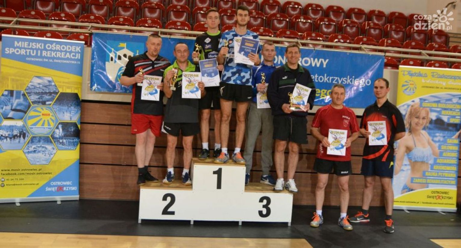 Kolejność w grupach: Grupa A: 1. Jakub Kuźmicz / Dawid Stąpór (Sandomierz) – 8pkt 2. Sławomir Kasprowicz / Krzysztof Tokarski (Ostrowiec Św. / Ćmielów) – 6pkt 3. Sławomir Banaszek / Krzysztof Cieszkowski (Ostrowiec Św.) – 4pkt 4. Patryk Szcześniak / Stanisław Szcześniak (Skoroszyce) – 2pkt 5. Roman Kochanowicz / Bartłomiej Kochanowicz (Raniżów) – 0pkt Grupa B: 1. Grzegorz Marzec / Artur Stąpór (Ostrowiec Św.) – 8pkt 2. Paweł Kokosa / Robert Podsiadło (Ożarów) – 6pkt 3. Paweł Rożek / Katarzyna Rożek (Ujazd) – 4pkt 4. Marcin Nartowski / Bogdan Wyrzykowski (Ostrowiec Św.) – 2pkt 5. Daniel Sitek / Adrian Sitek (Ostrowiec Św.) – 0pkt Grupa C: 1. Damian Listek / Piotr Zwoliński (Janik / Ostrowiec Św.) – 8pkt 2. Paweł Mierzyński / Tomasz Banasik (Radom) – 6pkt 3. Jacek Szafrański / Zbigniew Gaik (Ostrowiec Św.) – 4pkt 4. Andrzej Jaskot / Roman Machula (Sandomierz) – 2pkt 5. Waldemar Przygoda / Arkadiusz Smolarski (Opatów) – 0pkt Grupa D: 1. Paweł Kos / Krzysztof Stala (Trześń) – 8pkt 2. Sylwia Stala / Kamil Kos (Trześń) – 6pkt 3. Zbigniew Kochanowicz / Bartek Kochanowicz (Sandomierz) – 4pkt 4. Mateusz Kaptur / Jan Krzemiński (Janik) – 2pkt 5. Rafał Stadryniak / Jakub Masternak (Ostrowiec Św.) – 0pkt Ćwierćfinały: Jakub Kuźmicz / Dawid Stąpór - Sylwia Stala / Kamil Kos 2:0 Grzegorz Marzec / Artur Stąpór - Paweł Mierzyński / Tomasz Banasik 2:0 Damian Listek / Piotr Zwoliński - Paweł Kokosa / Robert Podsiadło 2:0 Paweł Kos / Krzysztof Stala - Sławomir Kasprowicz / Krzysztof Tokarski 2:1 Półfinały: Jakub Kuźmicz / Dawid Stąpór - Grzegorz Marzec / Artur Stąpór 3:0 Damian Listek / Piotr Zwoliński - Paweł Kos / Krzysztof Stala 1:3 Mecz o 3 miejsce: Damian Listek / Piotr Zwoliński - Grzegorz Marzec / Artur Stąpór 3:0 (11:8, 12:10, 11:8) Mecz o 1 miejsce: Jakub Kuźmicz / Dawid Stąpór - Paweł Kos / Krzysztof Stala 3:1 (11:7, 11:7, 6:11, 11:6) Końcowa kolejność: 1. Jakub Kuźmicz / Dawid Stąpór 2. Paweł Kos / Krzysztof Stala 3. Damian Listek / Piotr Zwoliński 4. Grzegorz Marzec / Artur Stąpór