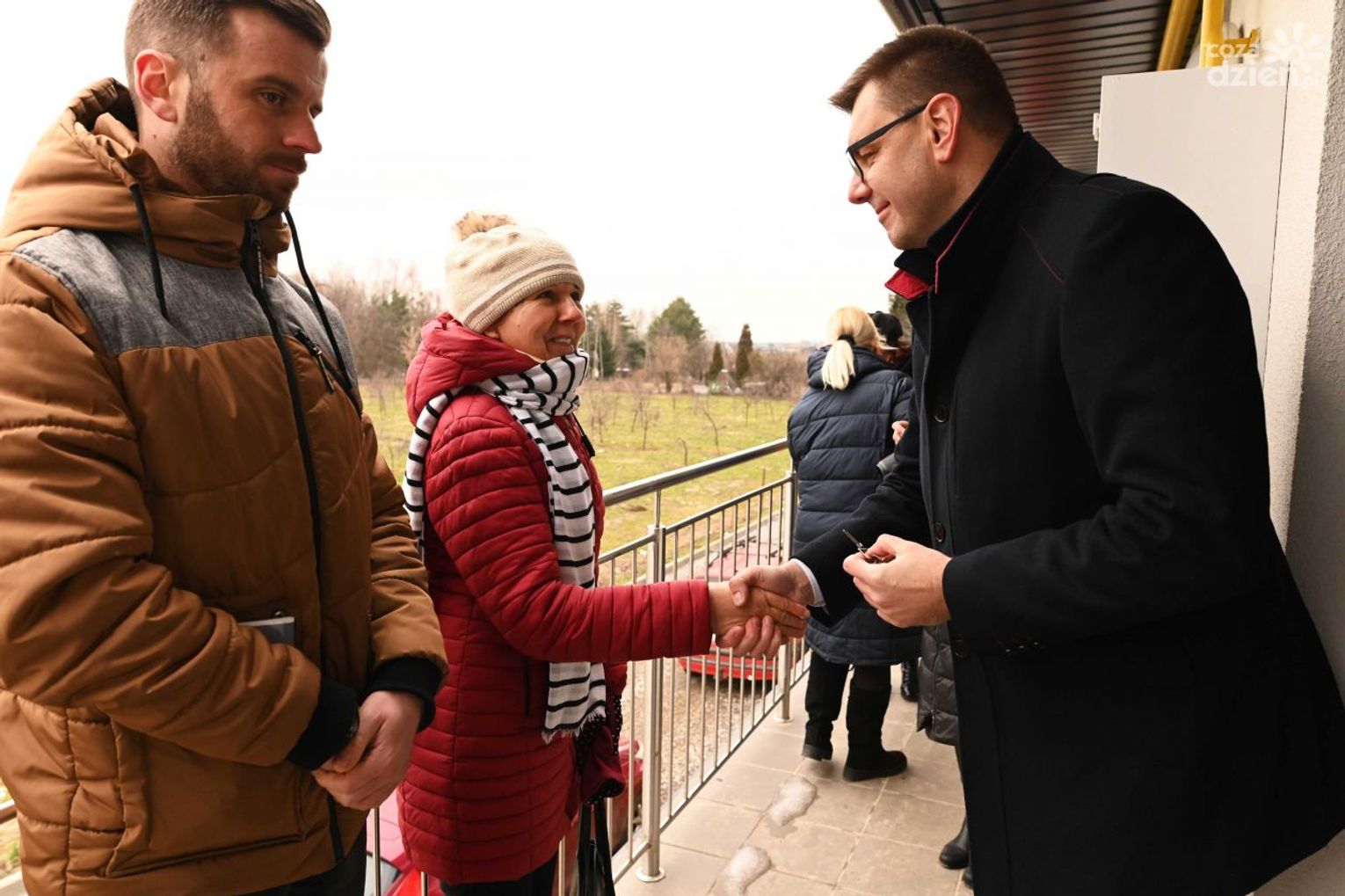 -"To jest dla nas bardzo szczęśliwy dzień. Bardzo dziękujemy panu Burmistrzowi za mieszkanie" - tak dziękowali nie kryjąc wzruszenia pani Iwona i pan Bartosz rodzice trójki dzieci, którzy dziś z rąk burmistrza Sandomierza otrzymali klucze do 50 metrowego mieszkania w nowo wybudowanym bloku komunalno-socjalnym.