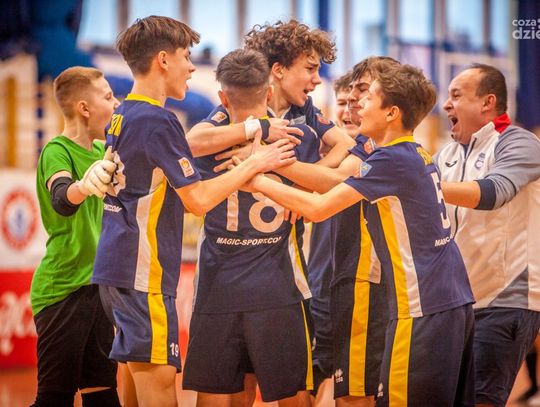 W piątek o godzinie 6 drużyna GKS Futsal Nowiny ruszyła w podróż do Ustki rozegrać turniej Finałowy Młodzieżowych Mistrzostw Polski w Kategorii U15 – rocznik 2008. Po długiej i męczącej podróży czekał nas pierwszy mecz turnieju z bardzo mocnym rywalem (GLKS Wilkowice – wicemistrz Polski w Futsalu w kategorii U15). Po szybko strzelonej bramce wychodzimy na prowadzenie, lecz drużyna z Wilkowic odpowiada w ciągu 30 sekund i mamy 1:1. Przez resztę potyczki obie drużyny skupiły się na ataku i wynik na tablicy bardzo często się zmieniał. Końcowy wynik 5:4 dla naszej drużyny pokazał jak bardzo wyrównane było to spotkanie, lecz ku naszemu zadowoleniu zdobywamy 3 punkty i udajemy się do hotelu na zasłużony wypoczynek. W drugim dniu najpierw podejmujemy drużynę Sobka Kraków (drużyna złożona z zawodników Garbarni Kraków, która w listopadzie walczyła w barażu o Centralną Ligę Juniorów). Spotkanie od początku do końca było pod kontrolą naszego zespołu i pewnie wygrywamy 4:1. Wiemy już, że awansujemy do ćwierćfinału z pierwszego miejsca w grupie. O ostatnim meczu grupowym chcielibyśmy jak najszybciej zapomnieć, musimy uznać wyższość drużyny AP Kowale. W niedzielę o godzinie 12.10 czekał nas ćwierćfinał z drużyną PSV Łódź. Mecz na początku bardzo wyrównany, lecz z każdą minuta nasza drużyna się rozkręcała i coraz bardziej dominowała nad drużyna z Łodzi, końcowy wynik 7:1 mówi wszystko. Początek półfinału z Legią Futsal nie był dobry w naszym wykonaniu, po szybko straconych dwóch golach zrobiło się nieciekawie. Małe zmiany w ustawieniu i odrabiamy straty z nawiązką i na 8 min do końcem meczy wychodzimy na prowadzenie 3:2. Na 3 minuty przed końcem popełniamy prosty błąd i tracimy bramkę na 3:3. Wynik do końca meczu się nie zmienia i o awansie do finału decydowały rzuty karne. Bohaterem został nasz bramkarz Jakub Molęda, który broni decydującego o awansie karnego i tym oto sposobem awansujemy do finału U-15. W nim mierzymy się z multimedalistą Młodzieżowych Mistrzostw Polski w Futsalu Rekordem Bielsko Biała.