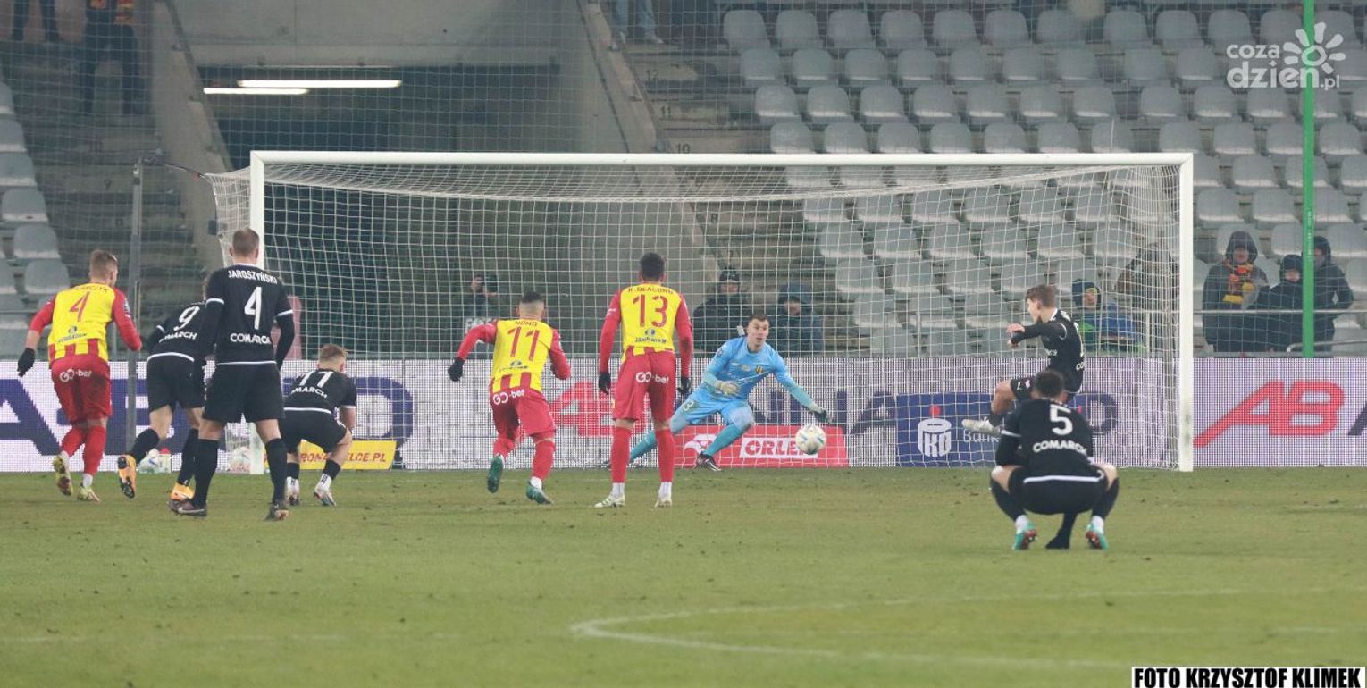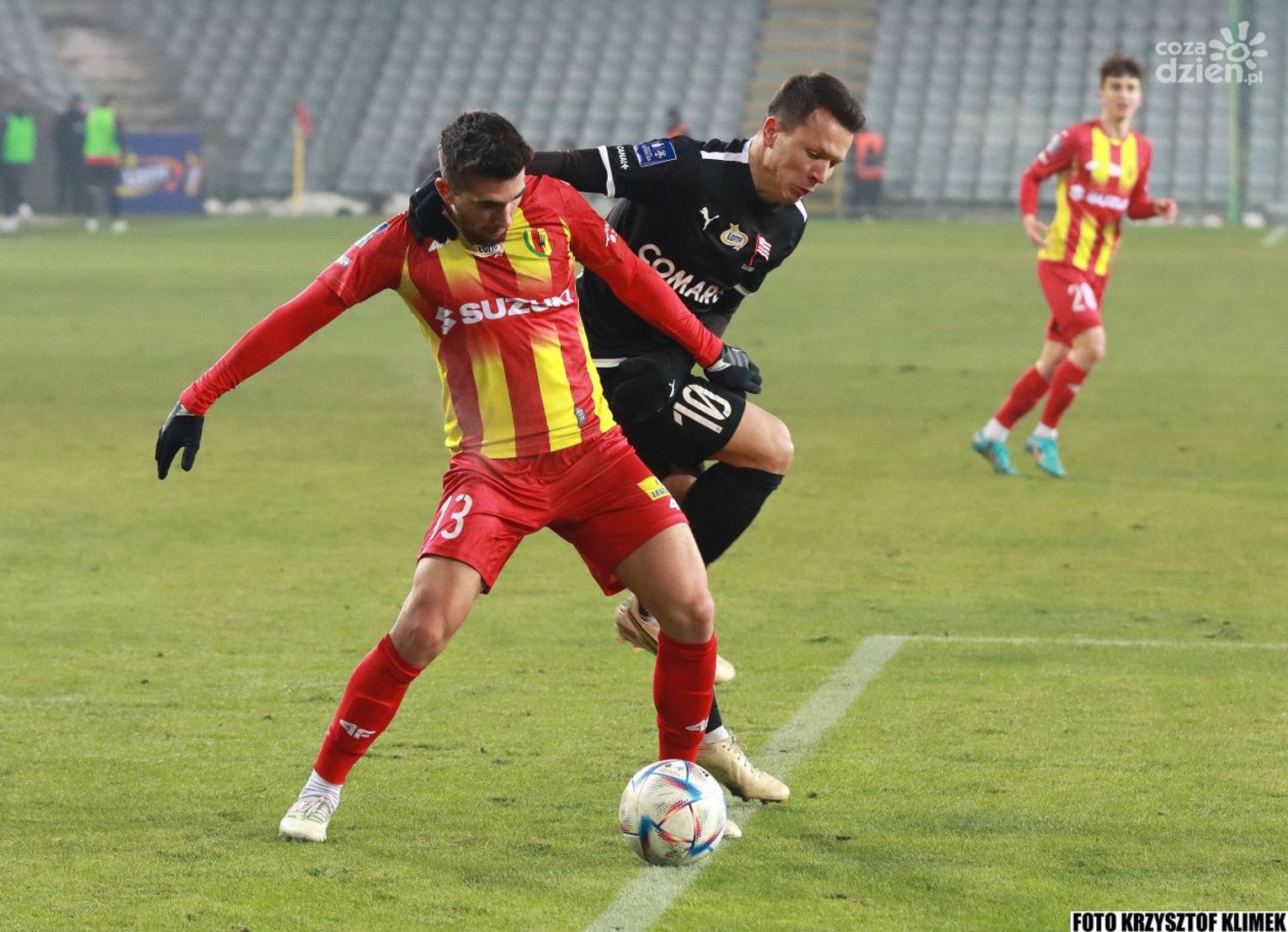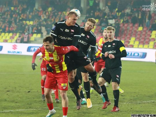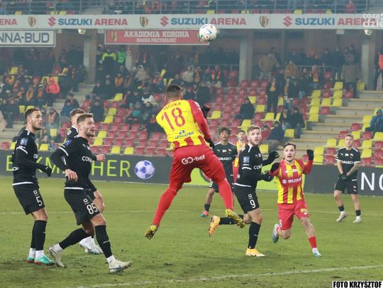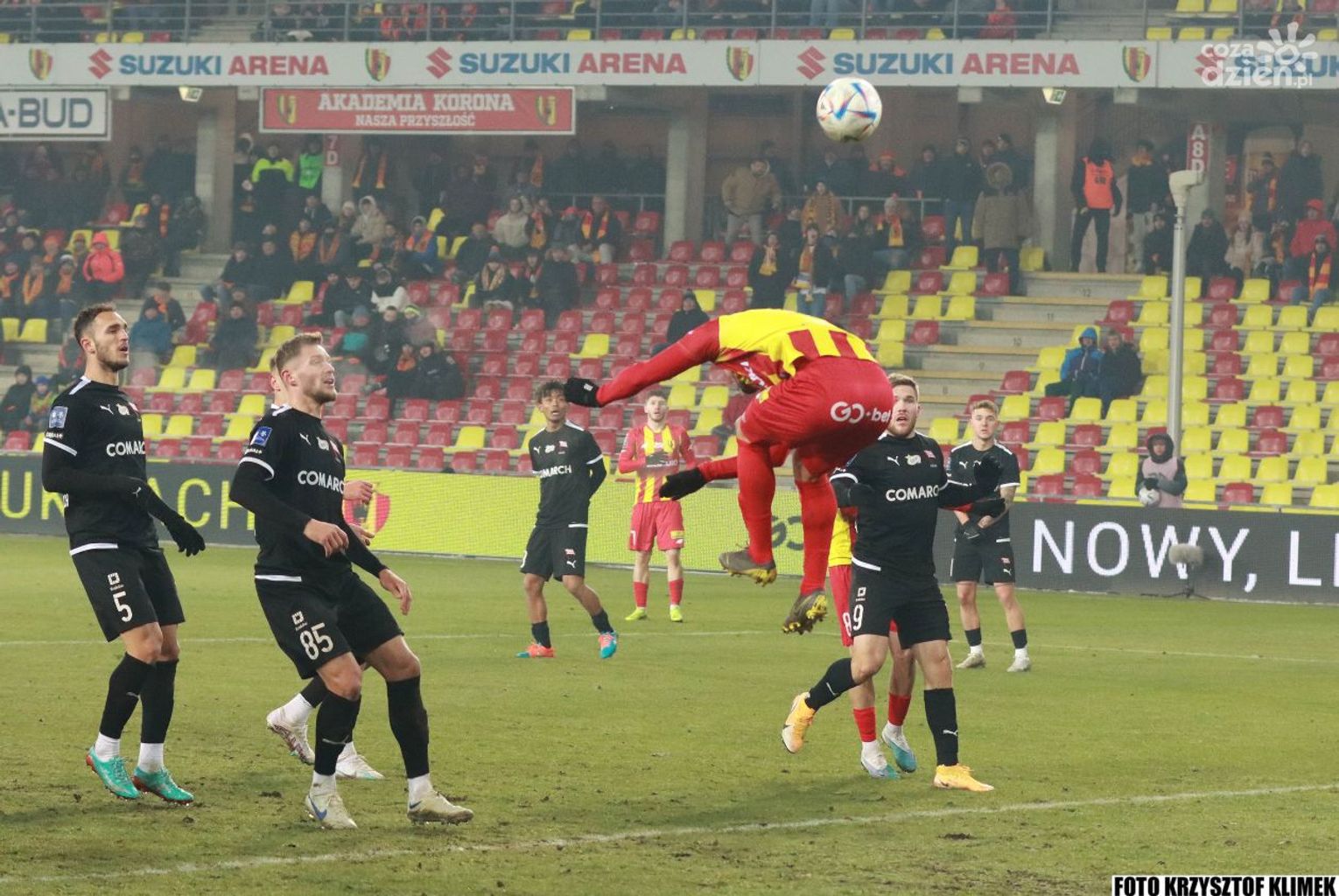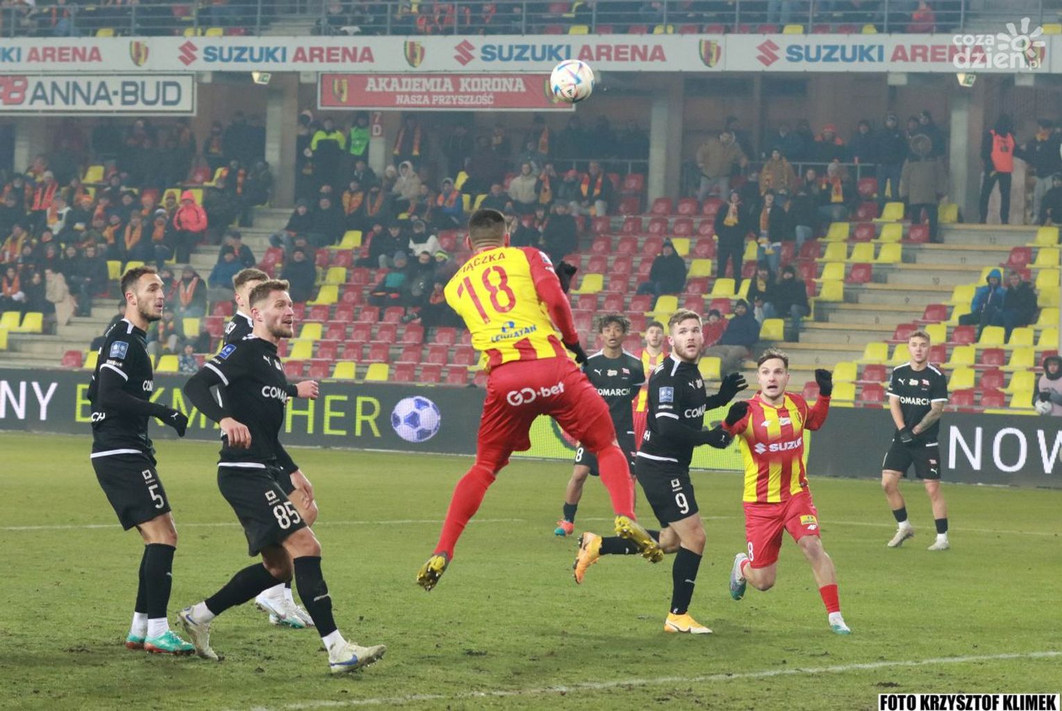 Przed przerwą goście zagrozili bramce Marcela Zapytowskiego, ale Karol Knap uderzył zbyt słabo, a potem Michała Rakoczego uprzedził świetną interwencją Marius Briceag. Trzeba przyznać, ze zimowe transfery Koronie wypaliły. Z Pasami dobrze wypadli boczni obrońcy, ciekawie Hiszpan Nono, który imponuje wyszkoleniem technicznym. Karnego wywalczył rozkręcający się Ronaldo Deaconu, skorzystał z głupiego zachowania Jewhena Konoplanki. Do piłki podszedł Jakub Łukowski i uzyskał swojego gola numer 8 w tym sezonie w elicie.