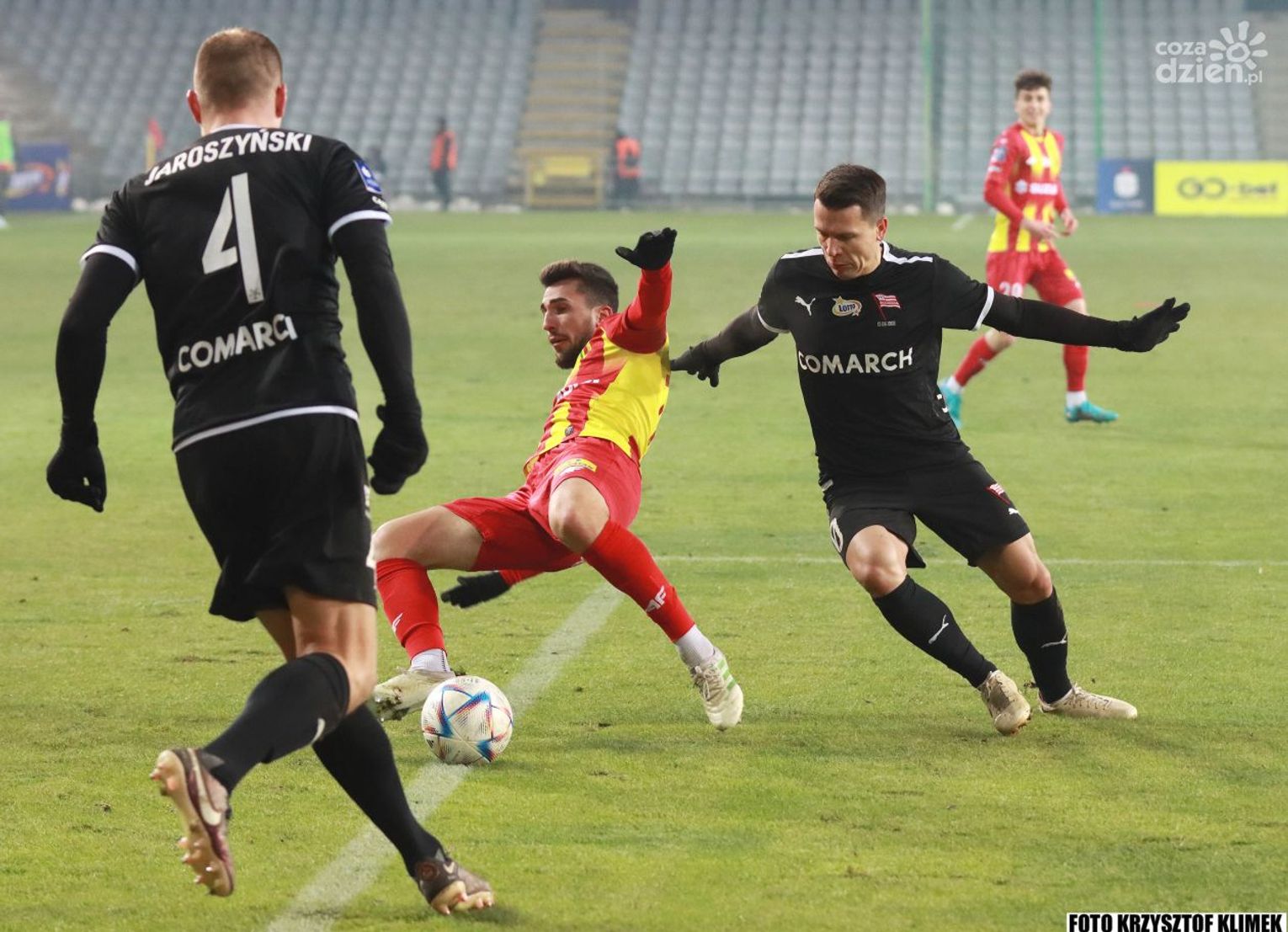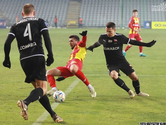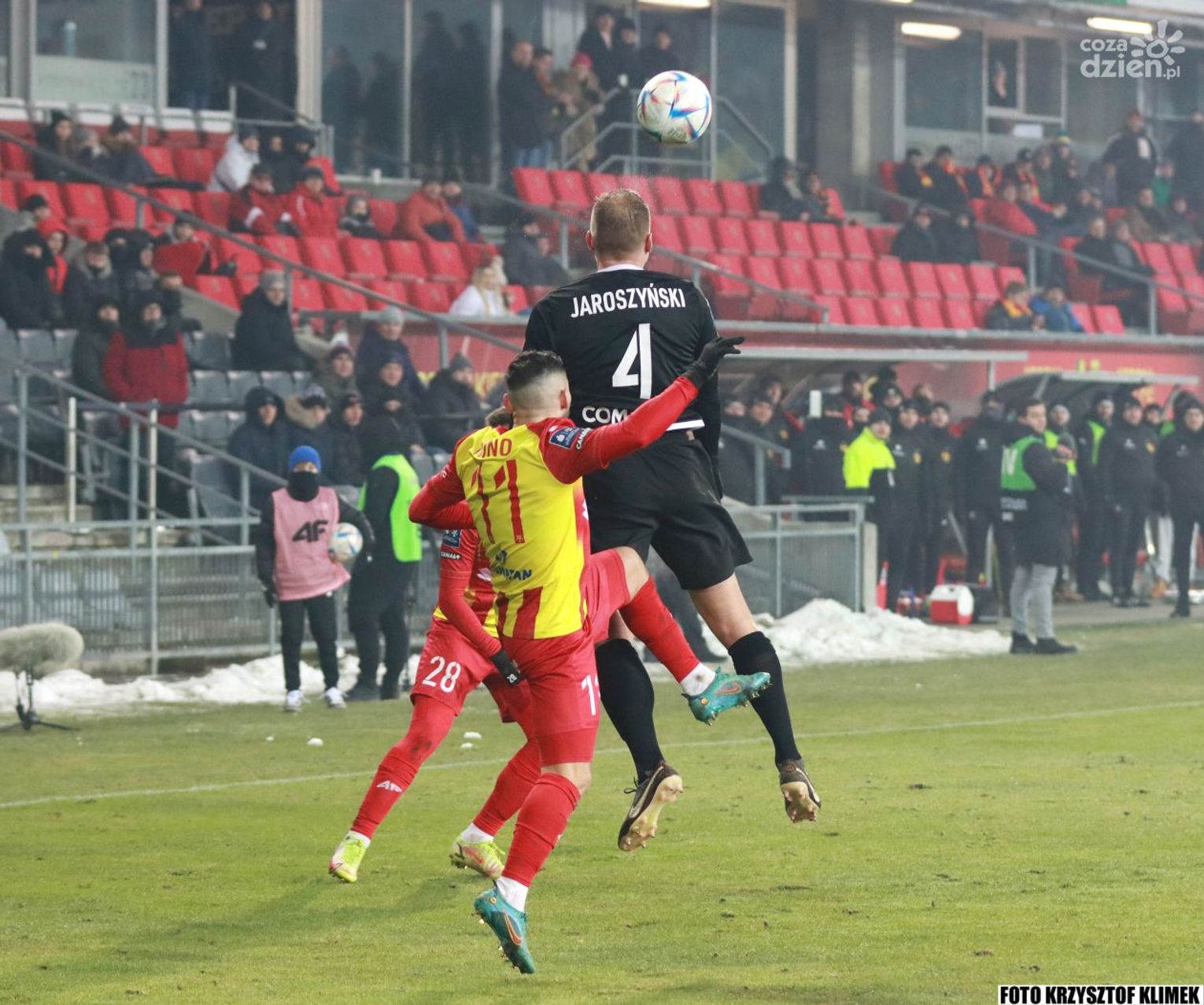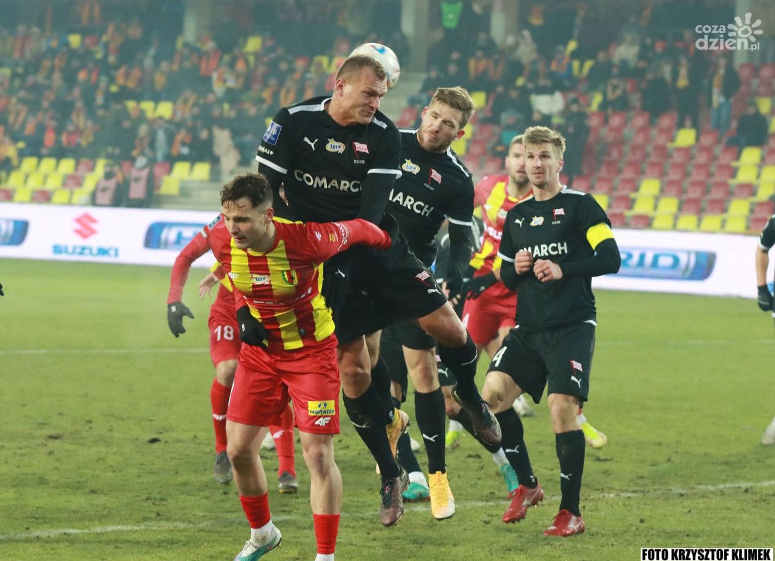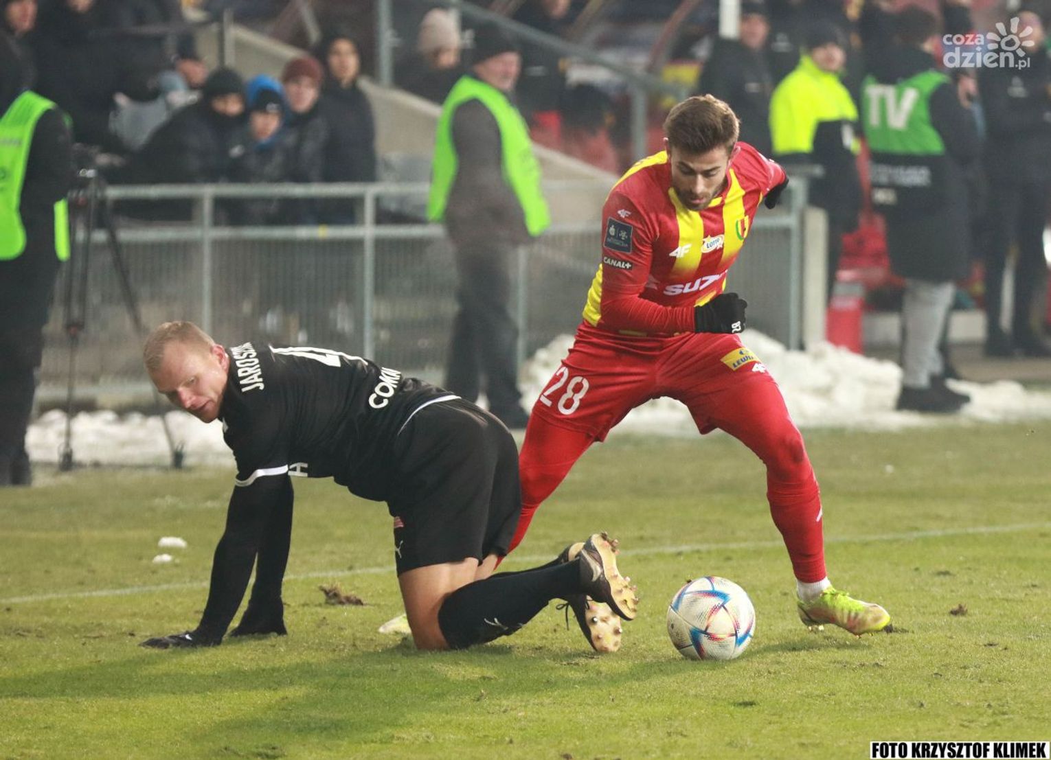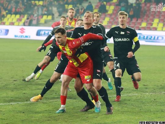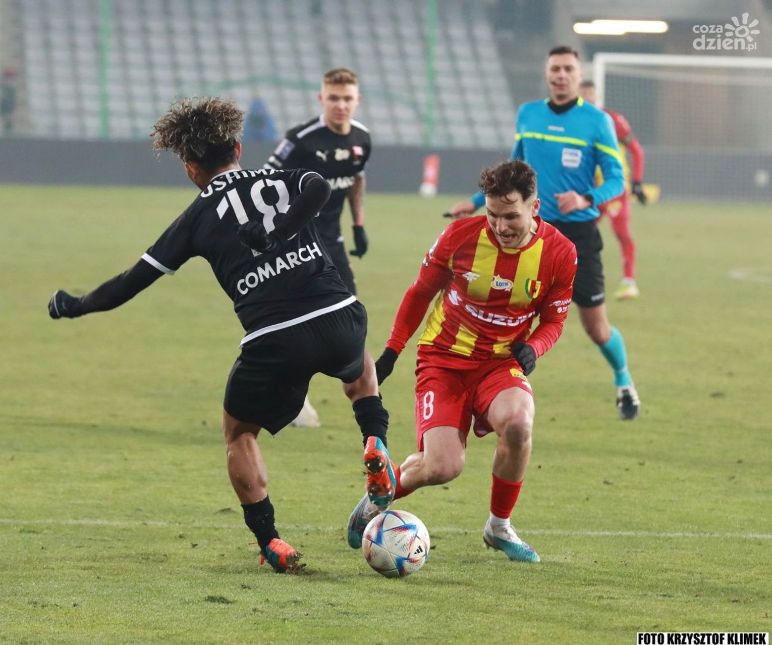 Przed przerwą goście zagrozili bramce Marcela Zapytowskiego, ale Karol Knap uderzył zbyt słabo, a potem Michała Rakoczego uprzedził świetną interwencją Marius Briceag. Trzeba przyznać, ze zimowe transfery Koronie wypaliły. Z Pasami dobrze wypadli boczni obrońcy, ciekawie Hiszpan Nono, który imponuje wyszkoleniem technicznym. Karnego wywalczył rozkręcający się Ronaldo Deaconu, skorzystał z głupiego zachowania Jewhena Konoplanki. Do piłki podszedł Jakub Łukowski i uzyskał swojego gola numer 8 w tym sezonie w elicie.