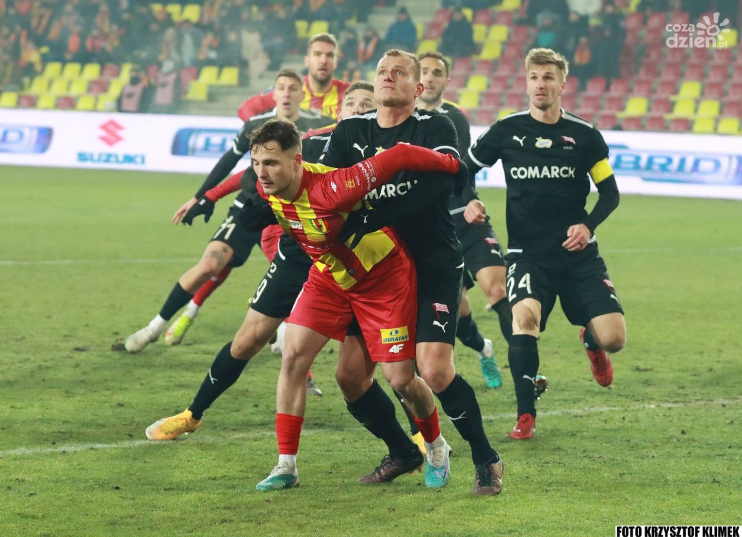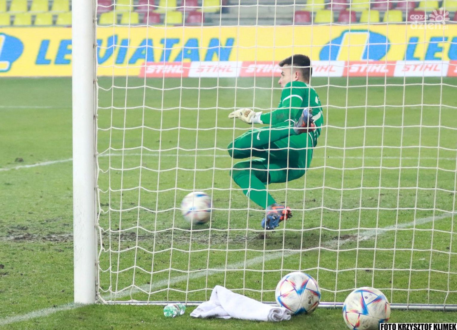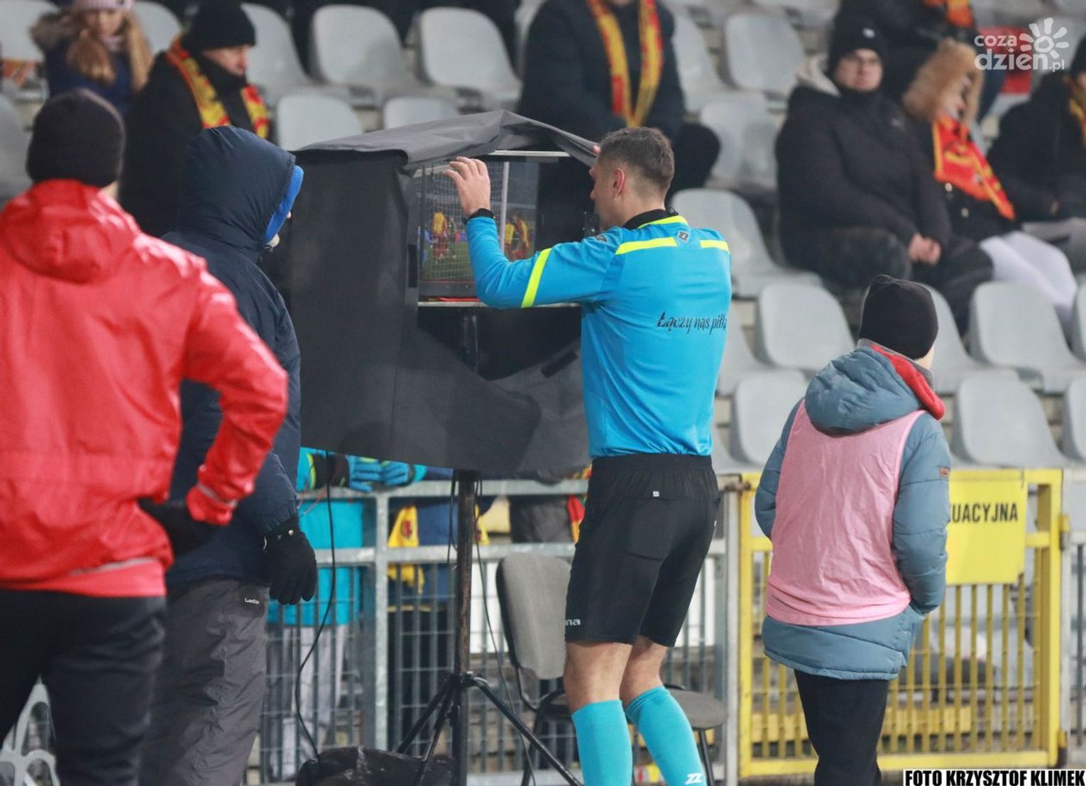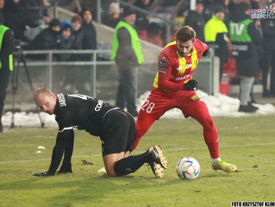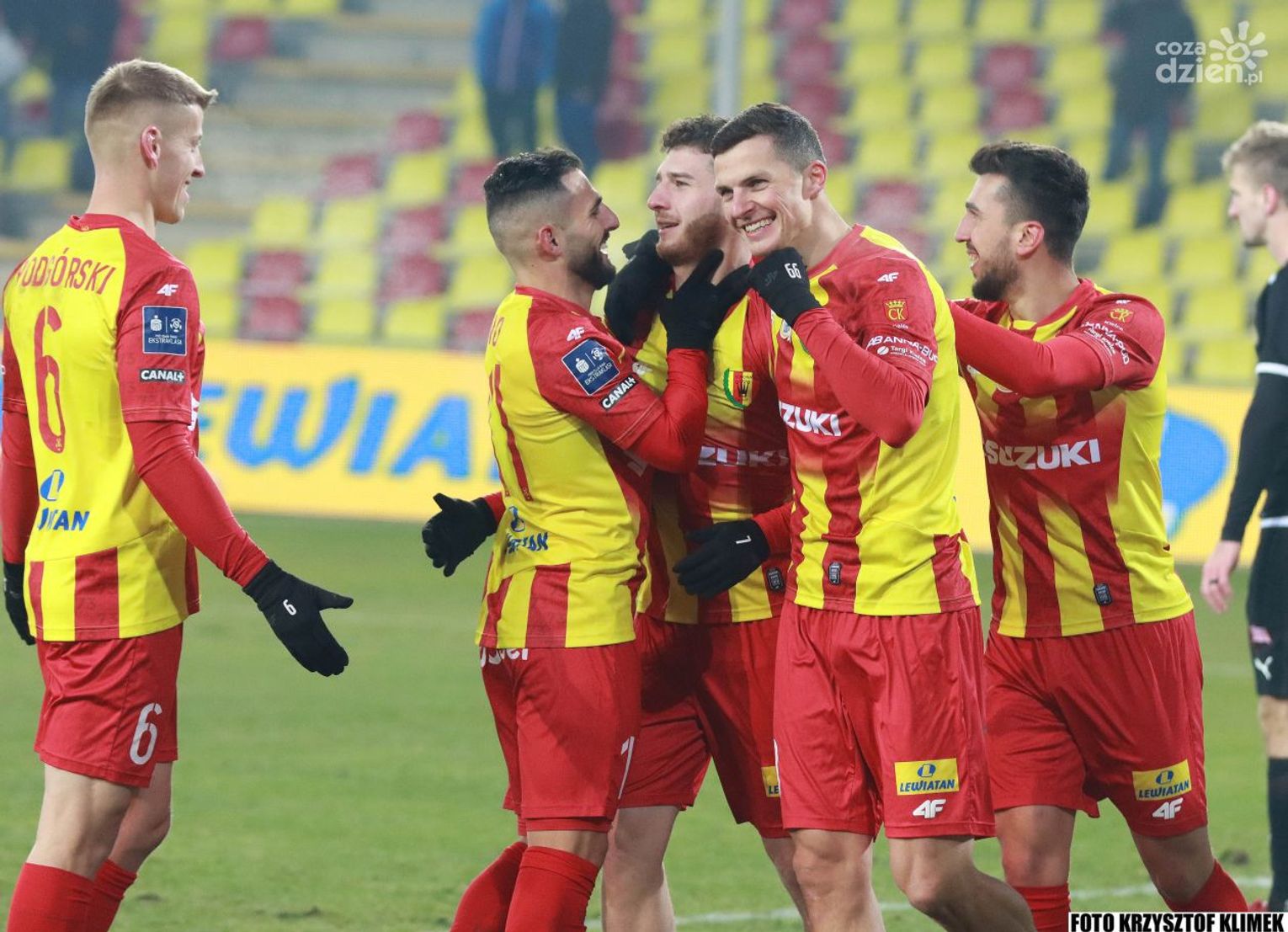 Przed przerwą goście zagrozili bramce Marcela Zapytowskiego, ale Karol Knap uderzył zbyt słabo, a potem Michała Rakoczego uprzedził świetną interwencją Marius Briceag. Trzeba przyznać, ze zimowe transfery Koronie wypaliły. Z Pasami dobrze wypadli boczni obrońcy, ciekawie Hiszpan Nono, który imponuje wyszkoleniem technicznym. Karnego wywalczył rozkręcający się Ronaldo Deaconu, skorzystał z głupiego zachowania Jewhena Konoplanki. Do piłki podszedł Jakub Łukowski i uzyskał swojego gola numer 8 w tym sezonie w elicie.