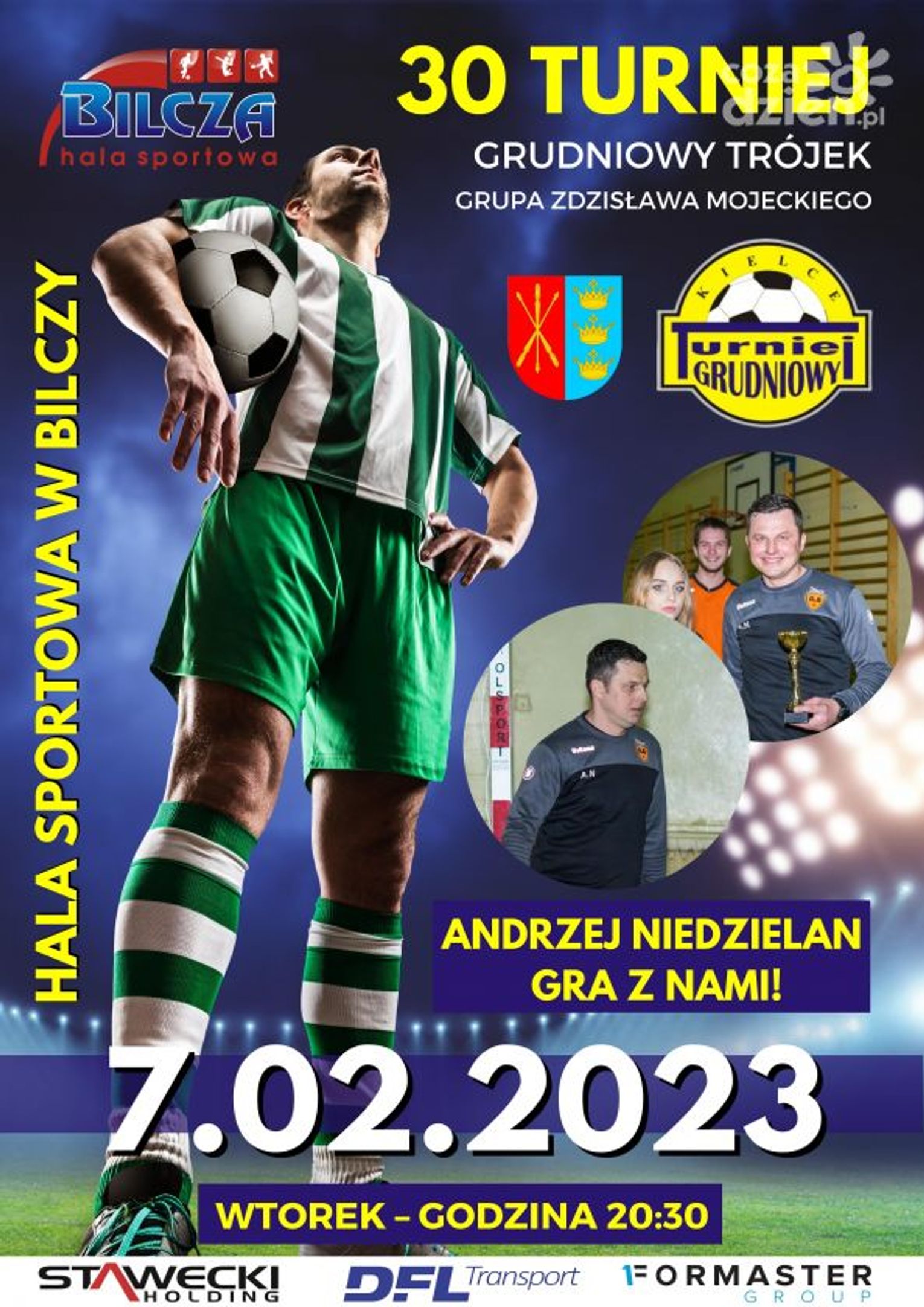 Grupa w ramach 30 Turnieju Grudniowego uczci pamięć Zdzisława Mojeckiego, zasłużonego działacza sportowego, który zmarł 2 lata temu. Wystąpią w niej czołowe zespoły trójek - Moravia (wicemistrz trójek, mistrz Grupy VIP trójek), Sport CK (mistrz Kieleckiej Ligi Futsalu), Stawecki Holding, Formaster, Absolutus. Na inaugurację z drużyną Niedzielana zmierzy się Moravia Junior I - rewelacja poprzedniej edycji trójek, prowadzona przez Marka Bożka.