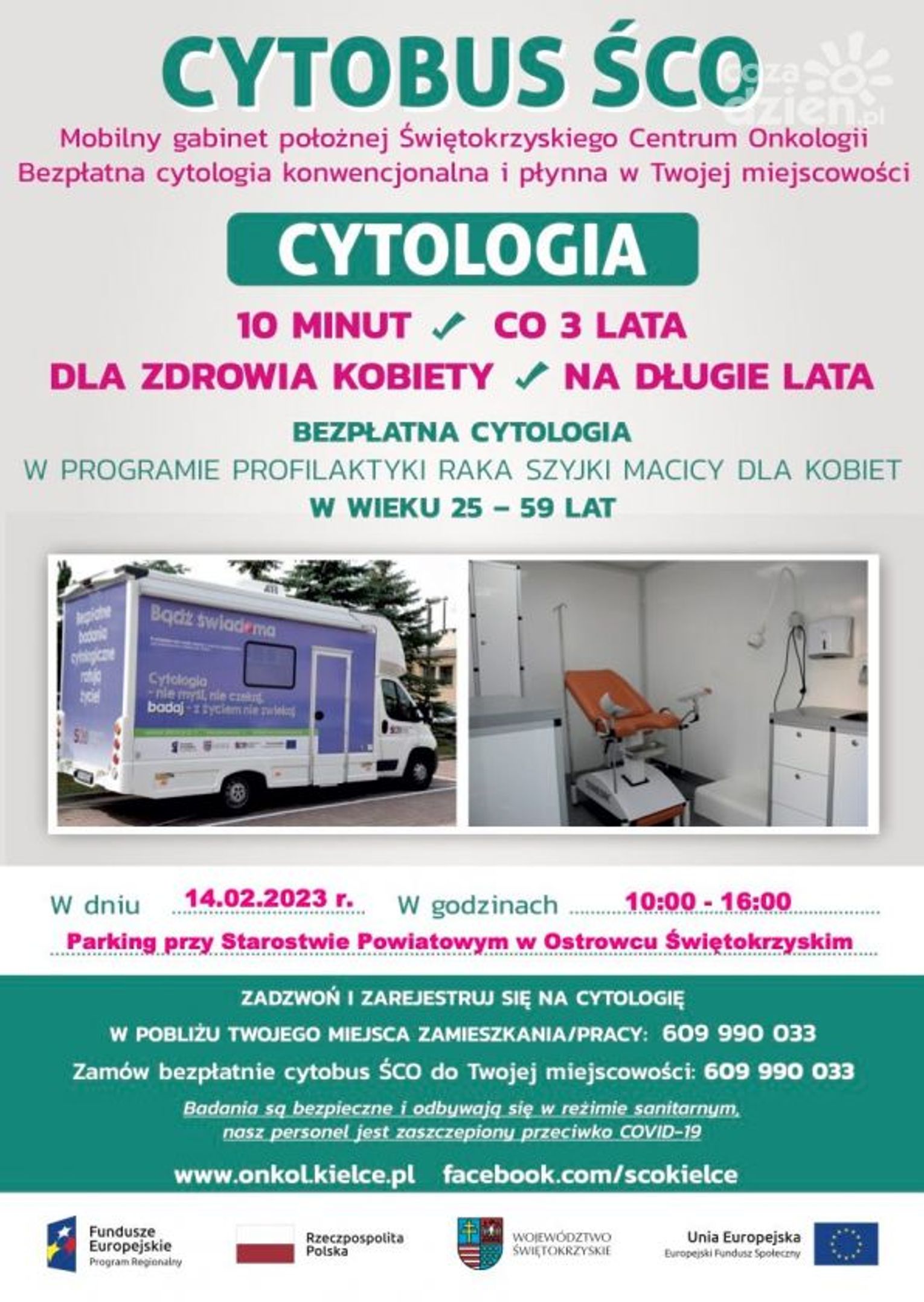 Cytomammobus ŚCO stacjonował będzie tradycyjnie już na parkingu przed starostwem powiatowym na ul. Iłżeckiej 37. Badania w mobilnym gabinecie położnej wykonywane będą 14 lutego w godzinach od 10.00 do 16.00.