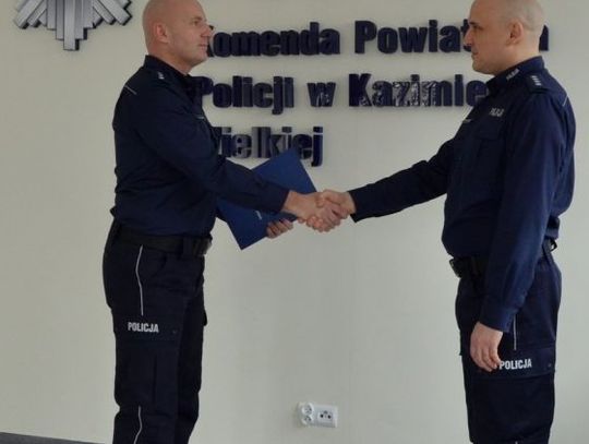 Dzisiaj o godzinie 10 w sali narad p.o. Komendant Powiatowy Policji w Kazimierzy Wielkiej nadkom. Tomasz Zwolski wręczył rozkaz Komendanta Wojewódzkiego Policji w Kielcach nadinsp. dr Jarosława Kalety o powierzeniu obowiązków pierwszego zastępcy komendanta miejscowej jednostki nadkom. Marcinowi Ciszkowi. Szef kazimierskich policjantów życzył swojemu nowemu zastępcy owocnej współpracy i samych sukcesów w dalsze służbie.