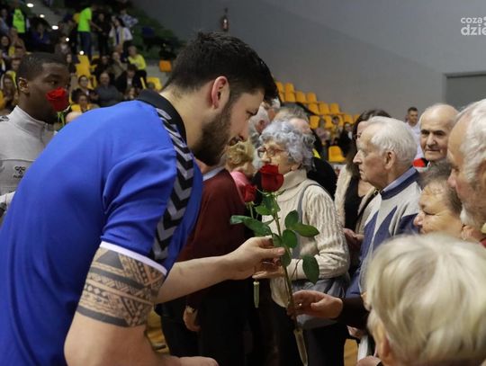 W przerwie meczu, Jubilaci zostali poproszeni na parkiet, a kieleccy zawodnicy wręczyli im czerwone róże i drobne upominki.