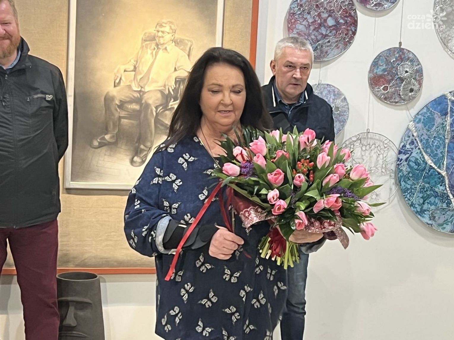 "W ogóle cudowny dzień tutaj przeżywam bo przyjechałam, wreszcie mam wolne po ciężkich nagraniach. Tu jest taka cudowna ta galeria i właśnie prosiłam, żeby między Nowickim a Trelą być. To bym była z nimi blisko. Także bardzo miły dzień, dziękuję"