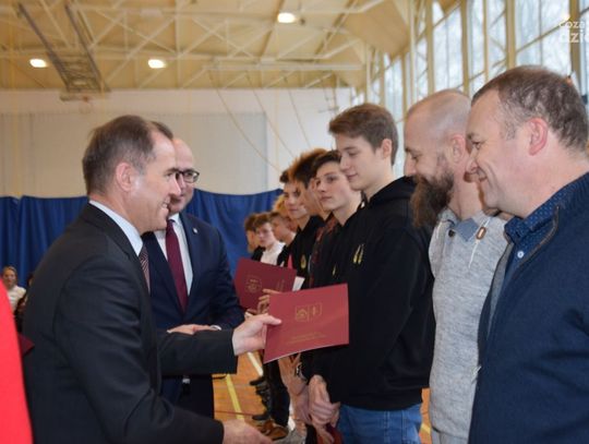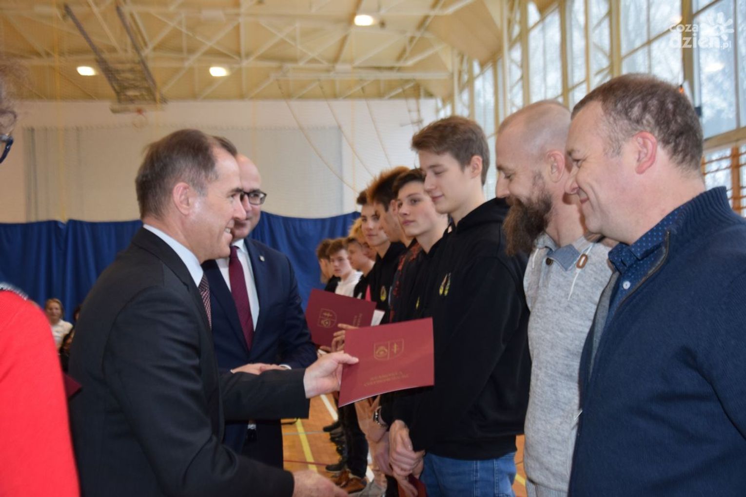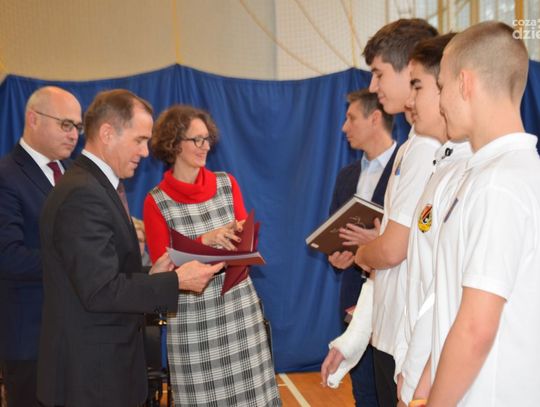 - Gratuluję wspaniałych osiągnięć - mówił wicestarosta Andrzej Jabłoński. - Wiemy, ile musicie poświęcić, ile wyrzeczeń kosztują was codzienne treningi. Jesteśmy z Was dumni, bowiem nie tylko rozsławiacie dobre imię swojej szkoły. Jesteście również wspaniałymi ambasadorami powiatu ostrowieckiego. Bardzo się cieszę, że nasi zawodnicy zajmują wysokie lokaty w wielu prestiżowych zawodach na szczeblu krajowym i zagranicznym. To również duża zasługa trenerów. Bez ich zaangażowania, pracy nie byłoby takich sukcesów.