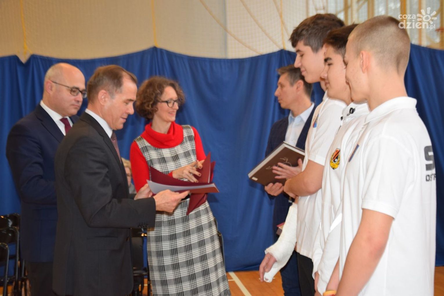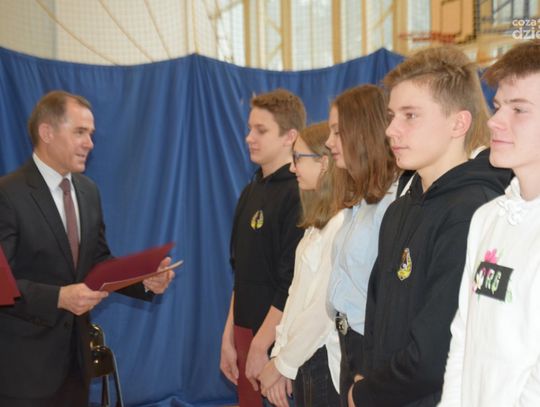 Wicestarosta Andrzej Jabłoński, wspólnie z naczelnikiem Wydziału Oświaty Mariuszem Łatą oraz Anną Trojanowską wręczyli uczniom z najlepszymi osiągnięciami sportowymi listy gratulacyjne i albumy.